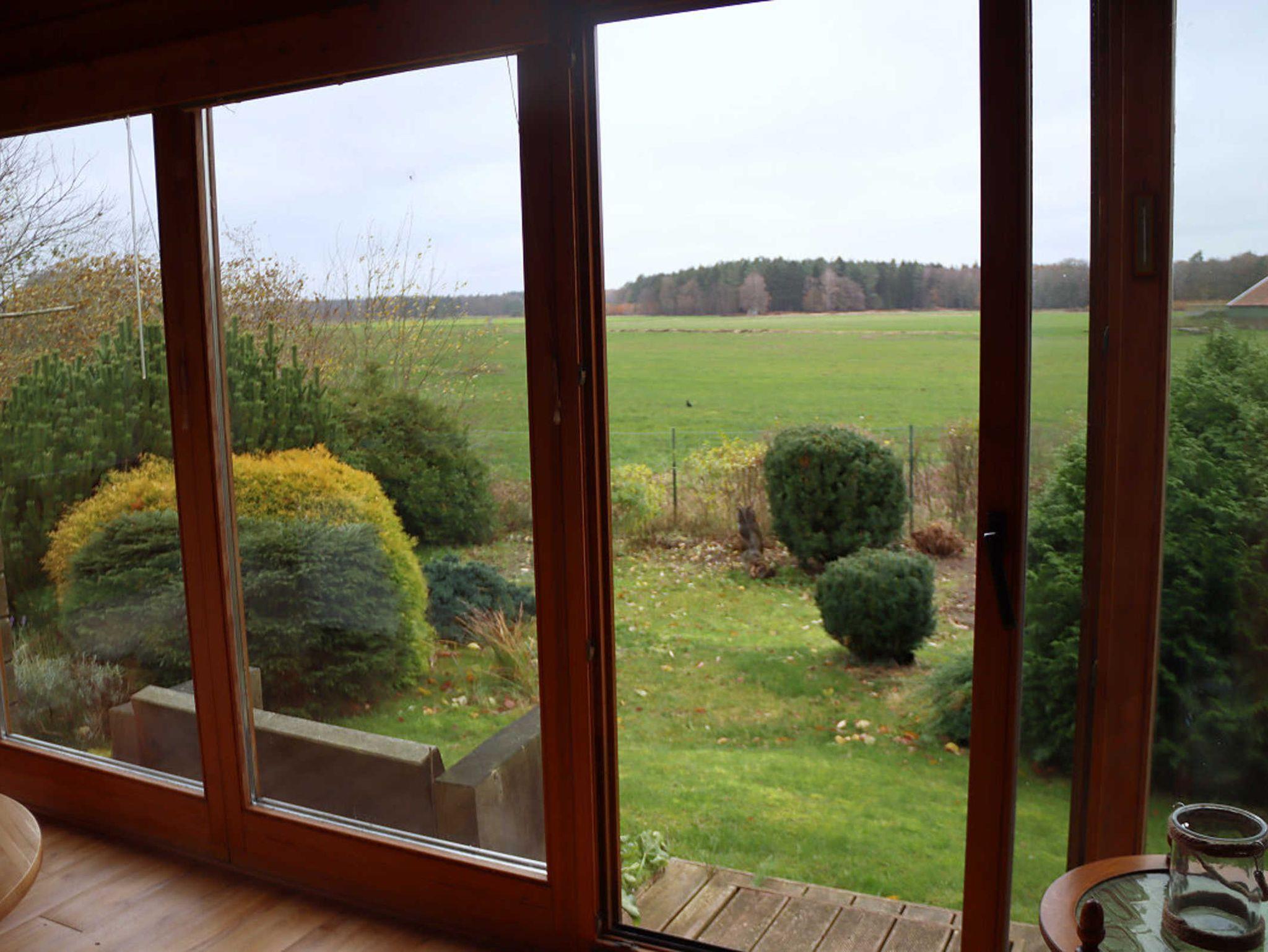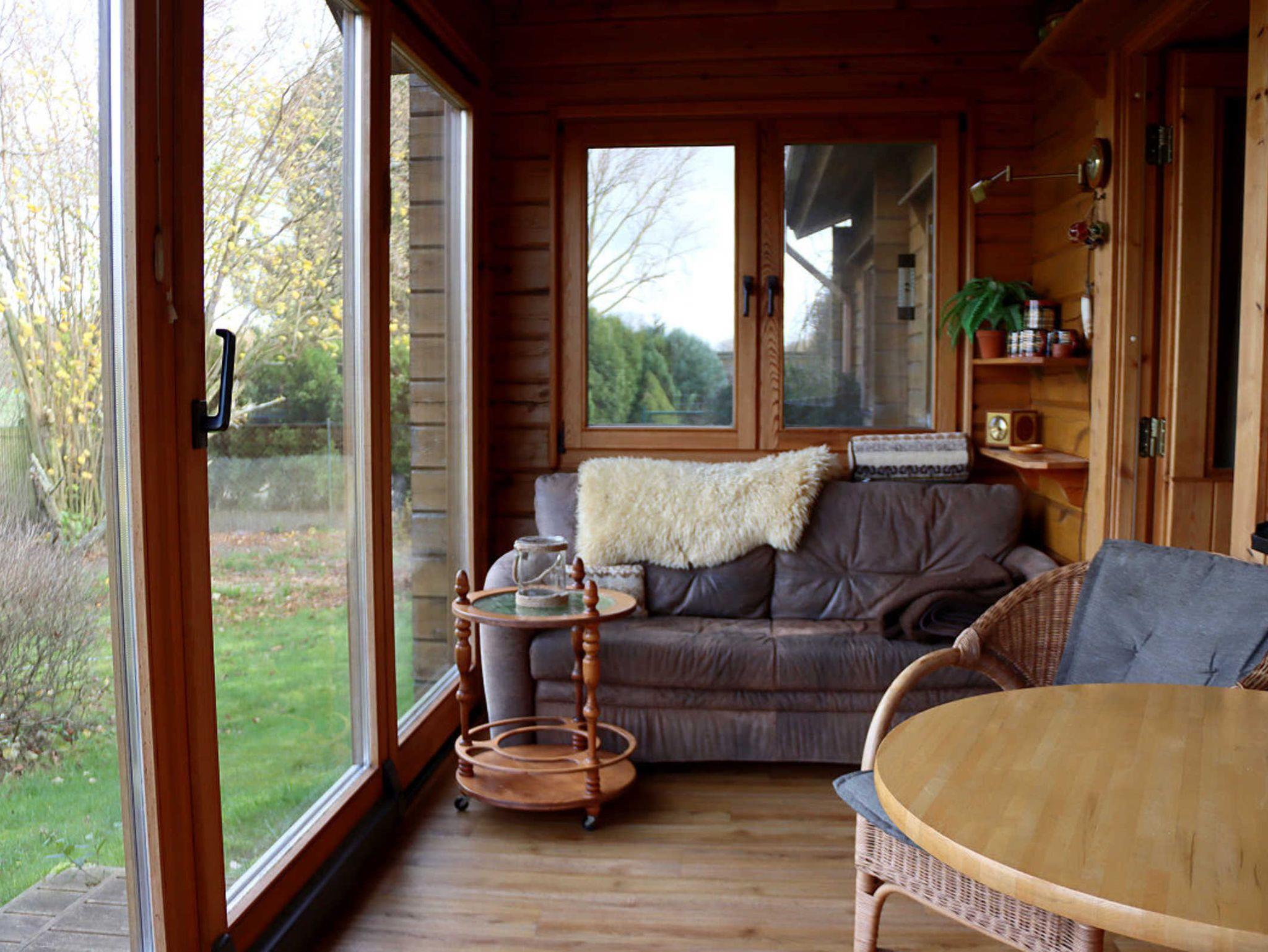 Unser Ferienhaus hat ein großes Wohn-Esszimmer, zwei Schlafzimmer, eine Küche, ein Badezimmer, einen verglasten beheizten Wintergarten und einen Hauswirtschaftsraum.