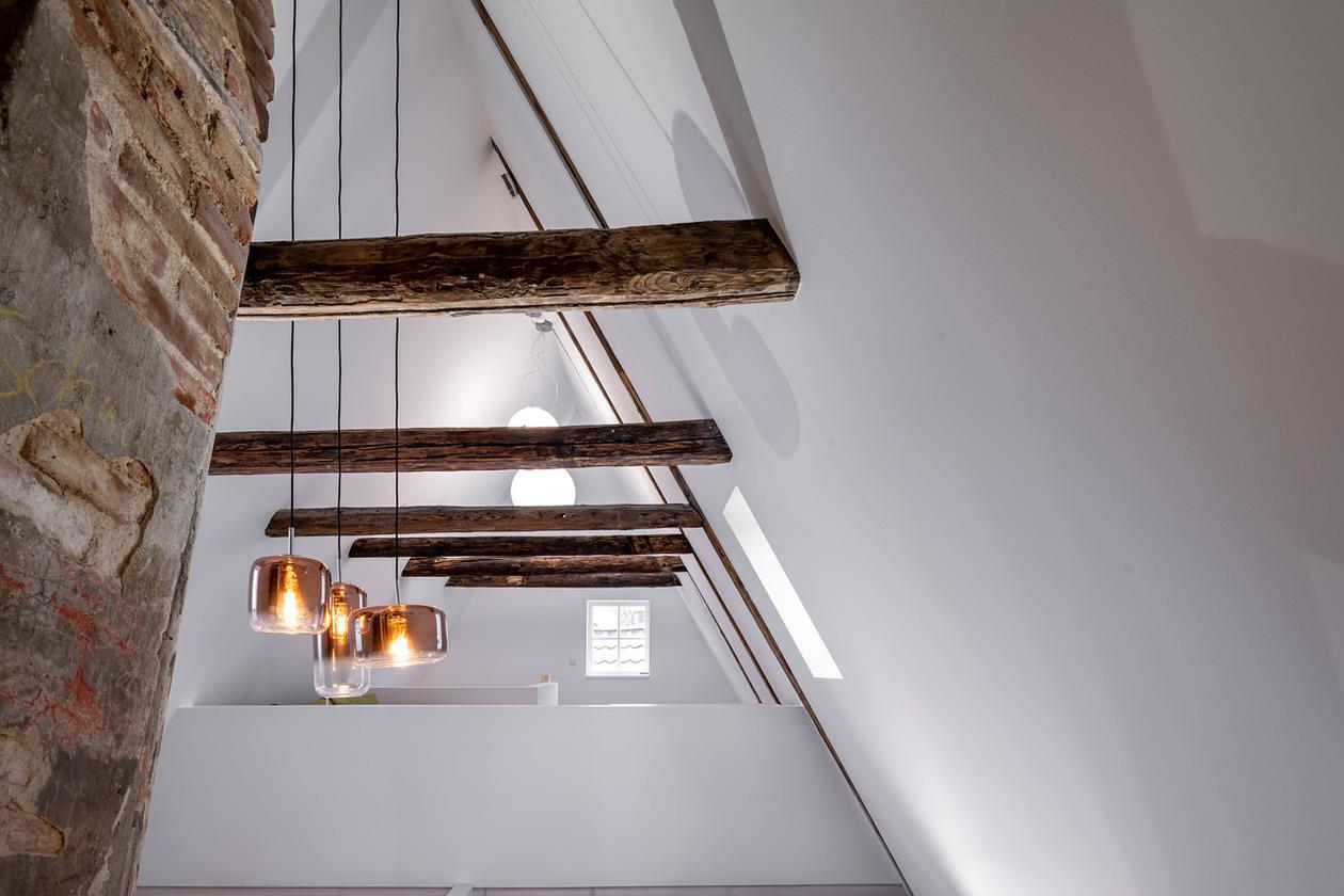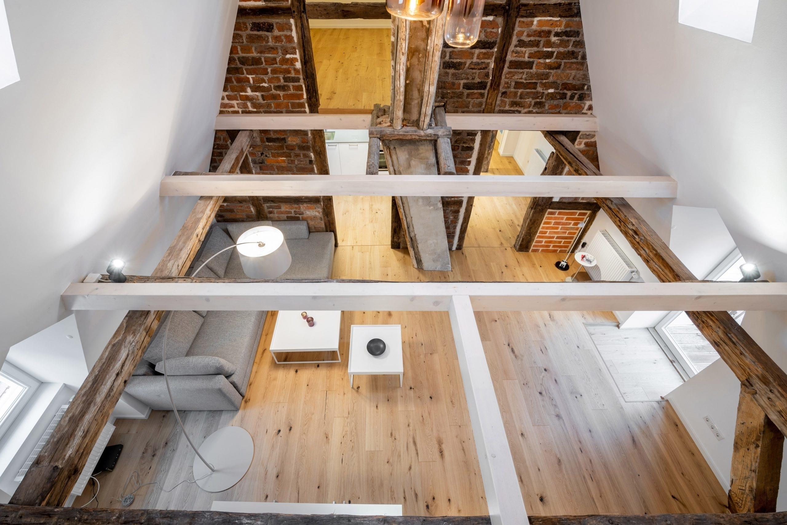 In erstklassiger Lage; mitten in der Altstadt - in unmittelbarer Nähe der Schröderstraße und des Schrangenplatzes . Zwei Dachgeschosswohnungen im zweiten Stockwerk mit kolossalen Deckenhöhen von 7,5 m, Galerieebenen, alte Backsteinmauern und altem Fachwerk, das bis auf 1389 zurückgeht. Die über 100 m² großen Suiten sind mit hochwertigen Parkettböden, vollständig ausgestatteten Küchen und Bädern mit Badewanne, Dusche, Bidet, zwei Waschbecken und beheizbaren Spiegeln, damit diese nicht beschlagen, ausgestattet. Eine der Suiten verfügt über einen kleinen französischen Balkon.