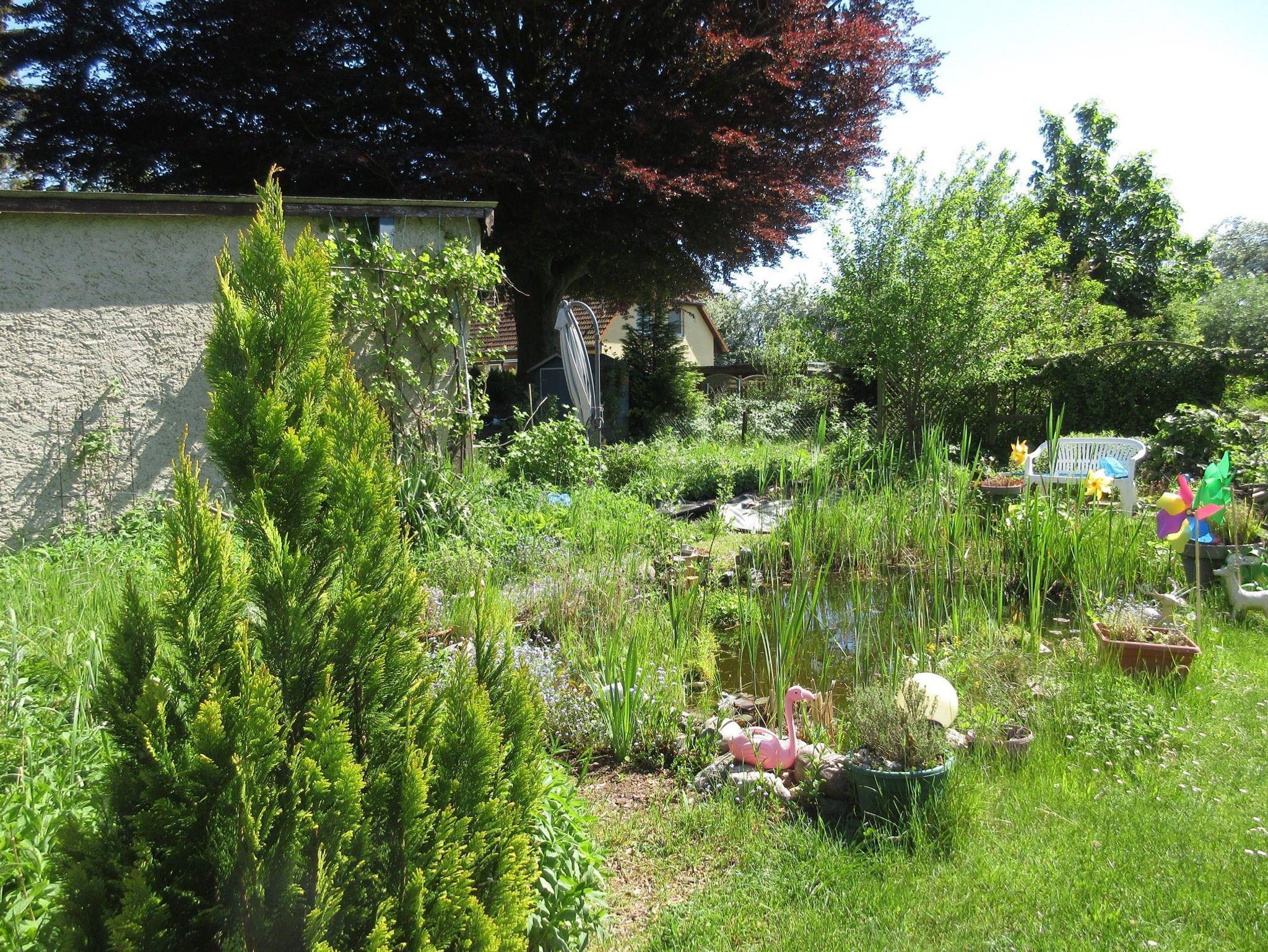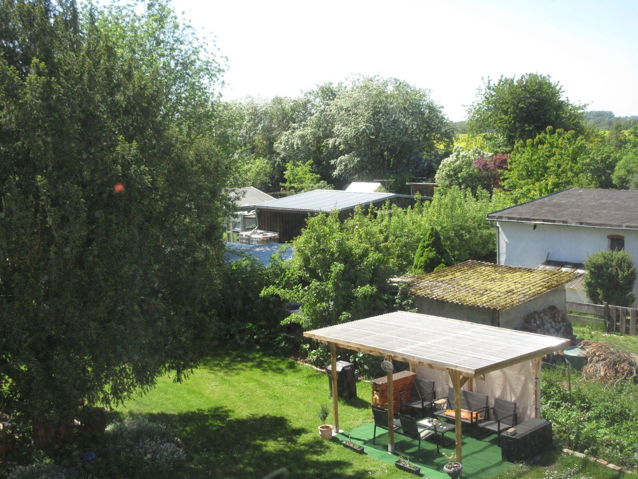 Hinter dem Haus befindet sich auf dem komplett eingezäunten Grundstück (Höhe ca. 60 ? 120cm), der kostenlose Parkplatz, ein großer Garten mit Wiese (Auslauf für die Hunde), Gartenmöbeln und einen Grillplatz, der gerne mitgenutzt werden kann.