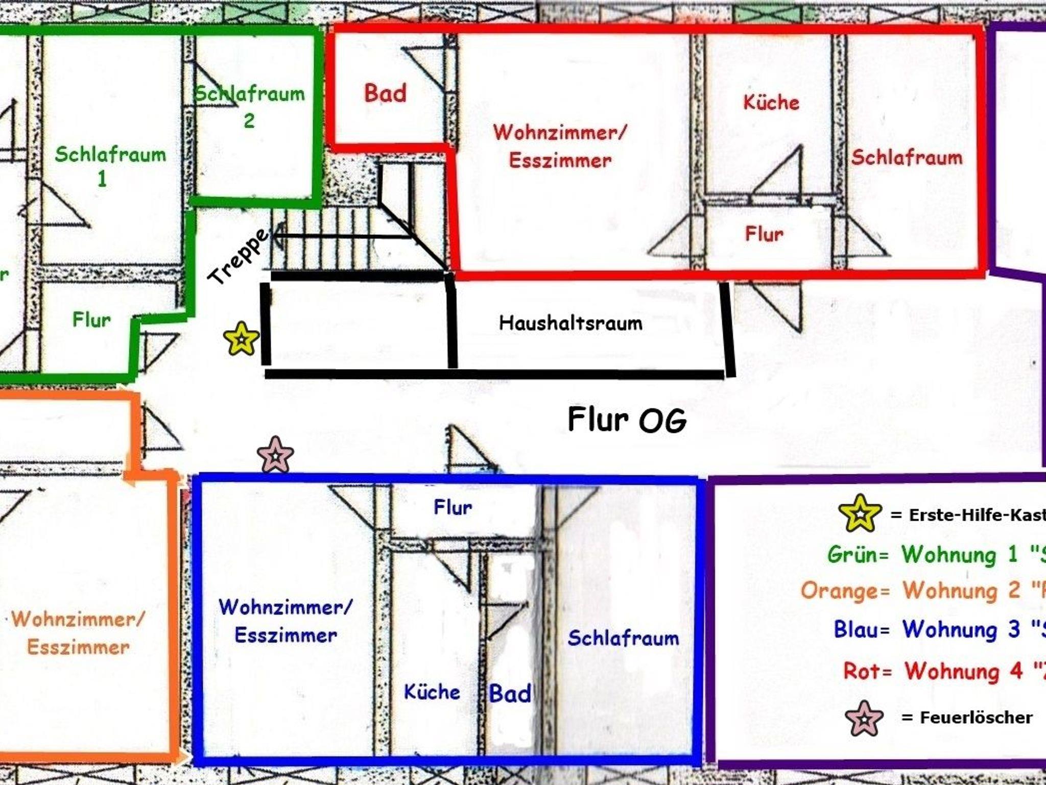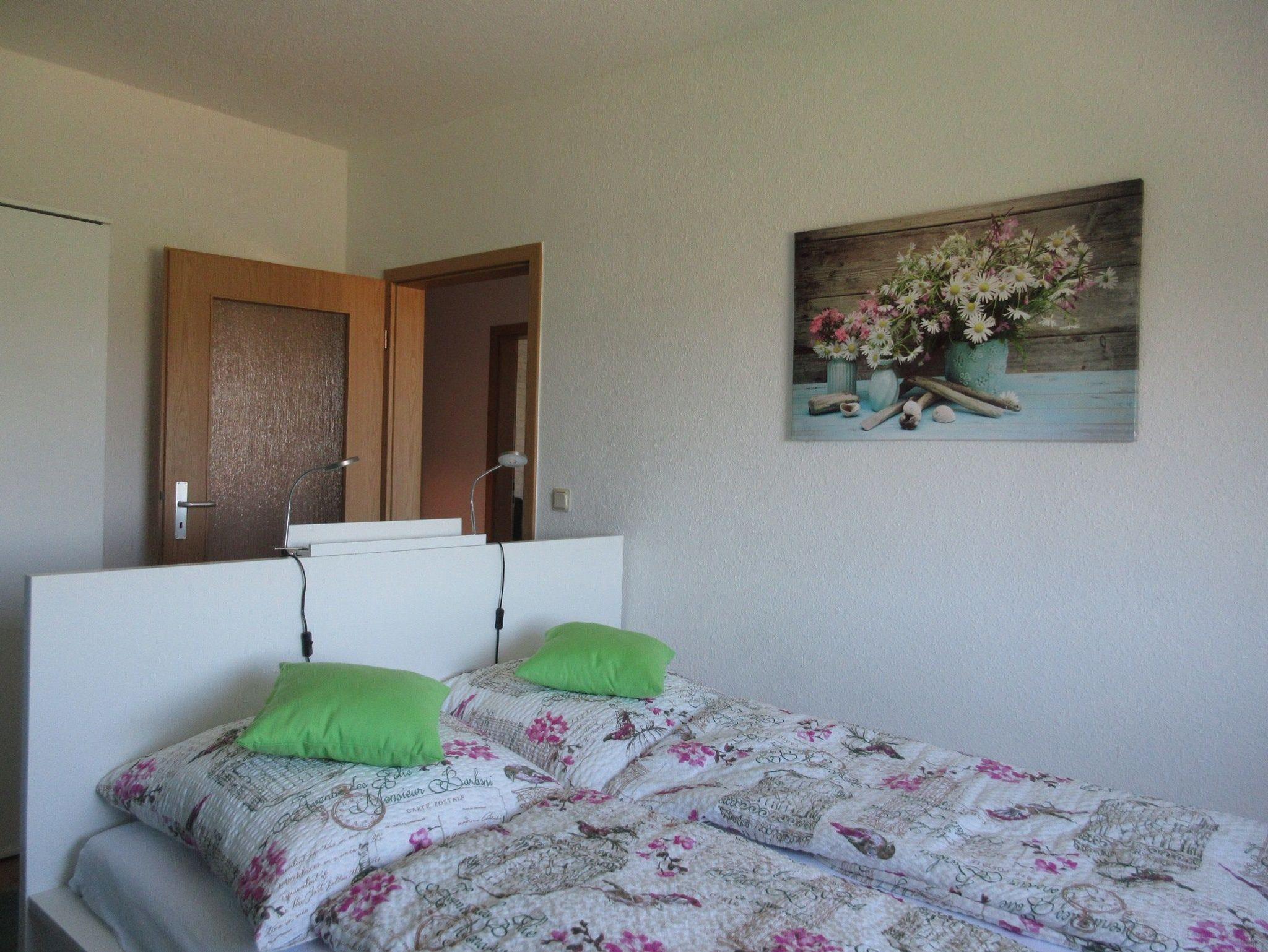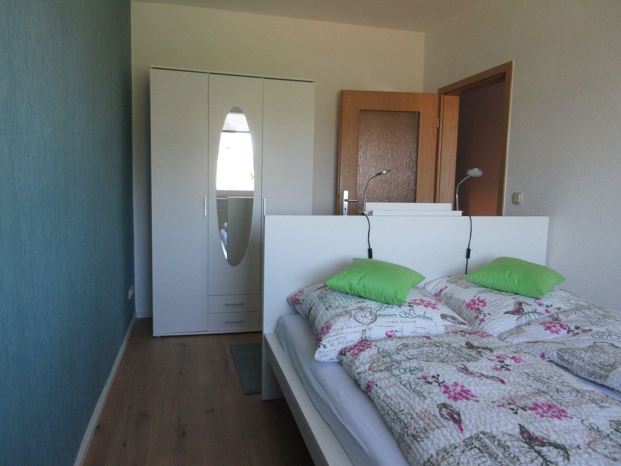 Die renovierte 53m große 3-Raum-Wohnung befindet sich im 1. OG (Treppe) und bietet Platz für 4 Personen mit maximal 2 Hunden. Die hundefreundliche Ferienwohnung verfügt über ein Hauptschlafzimmer mit Doppelbett (1,60m breit, Blick in den Sternenhimmel) und großem Kleiderschrank und ein 2. Schlafzimmer mit bequemem Einzelbett. Das Hauptschlafzimmer ist das Durchgangszimmer zum 2. Schlafzimmer.