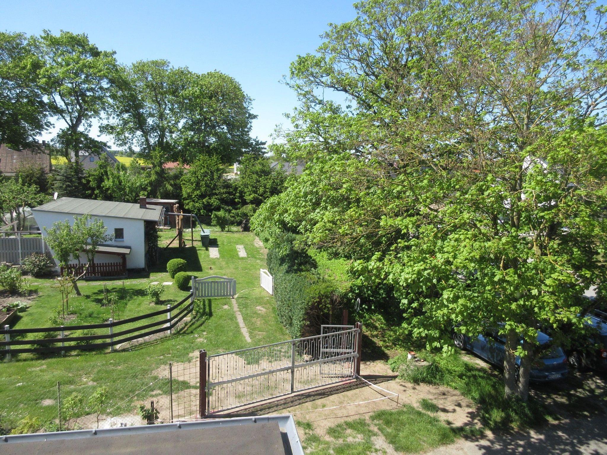 Hinter dem Haus befindet sich auf dem komplett eingezäunten Grundstück (Höhe ca. 60 ? 120cm), der kostenlose Parkplatz, ein großer Garten mit Wiese (Auslauf für die Hunde), Gartenmöbeln und einen Grillplatz, der gerne mitgenutzt werden kann.