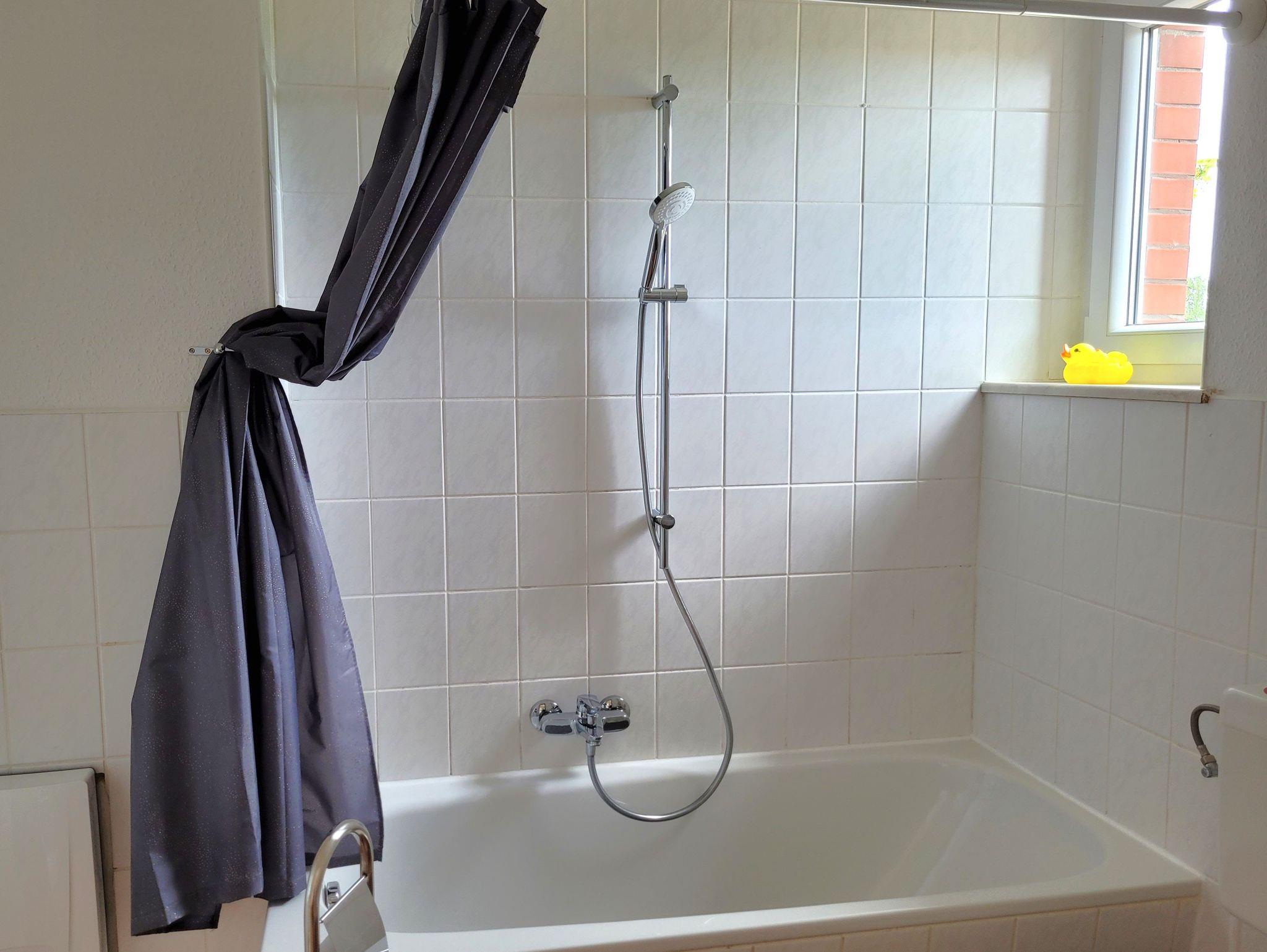 Das Bad bietet den Gästen eine Badewanne und eine Dusche (Duschvorhang). Handtücher und Bettwäsche können hinzugebucht werden. Seife und Toilettenpapier werden in Erstausstattung bereitgestellt.