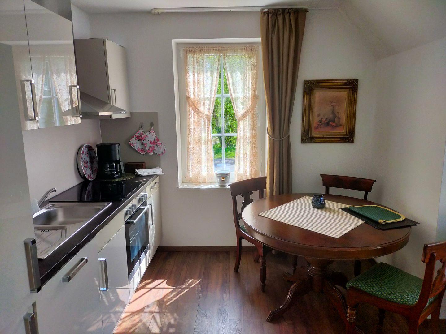 Herzlich Willkommen in der Ferienwohnung Johanna in der Ortschaft Lütetsburg. Über einen separaten Eingang kommen Sie in die helle Oberwohnung. Der gemütliche Wohnbereich versprüht durch seine Ausstattung einen besonderen Charme. Auf der bequemen Couch können Sie sich durch die kleine Bibliothek schmökern oder sich spannende Filme am Flachbild-TV anschauen. In der neuwertigen Küche kann sich der Hobbykoch austoben und ostfriesische Speisen zubereiten, die er dann am runden Esstisch servieren kann. Ein separates Schlafzimmer mit Doppelbett (mit hochwertigen Daunendecken) steht zum Träumen und Erholen bereit. Bettwäsche und Handtücher sind inklusive. Nebenan befindet sich das helle moderne Bad mit ebenerdiger Dusche. Die ganze Wohnung ist mit Fußbodenheizung ausgestattet. Das Highlight ist die am Wohnraum angrenzende Dachterrasse, wo Sie morgens das Frühstück, mittags die Sonnenstrahlen und einen schönen Grillabend genießen können. WLAN ist verfügbar! Einen Parkplatz finden Sie am Haus. Falls Sie einen Urlaub mit Freunden planen, können Sie die Wohnung Julia (Nr. 399572), die sich ebenfalls im Haus befindet, dazu buchen.