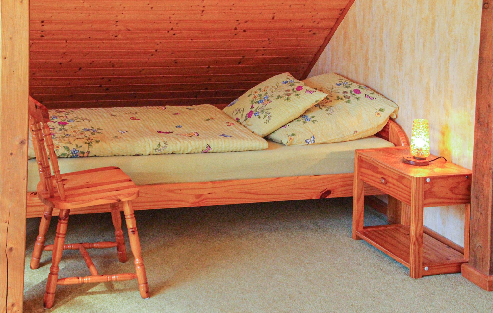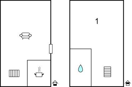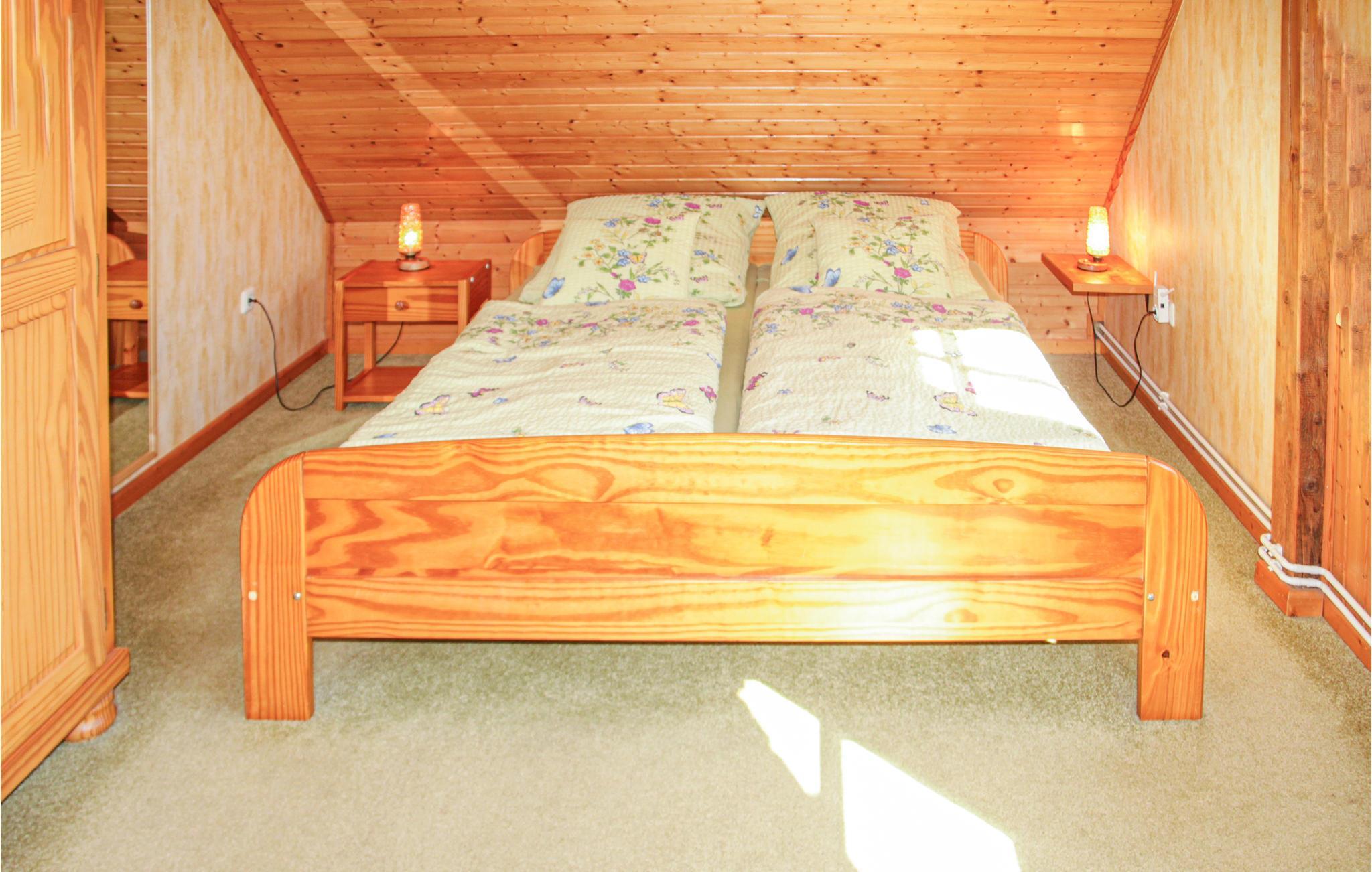 Rommene i feriehuset ligger i første etasje og første etasje. En åpen trapp fører fra stuen til soverommet. I fint vær kan du nyte solen og de idylliske omgivelsene på sitteplassene rundt huset. Hvis været tillater det, er det mulighet for å avslutte dagen ved leirbålet. Eiendommen har en tilbaketrukket beliggenhet med utsikt over vannet.