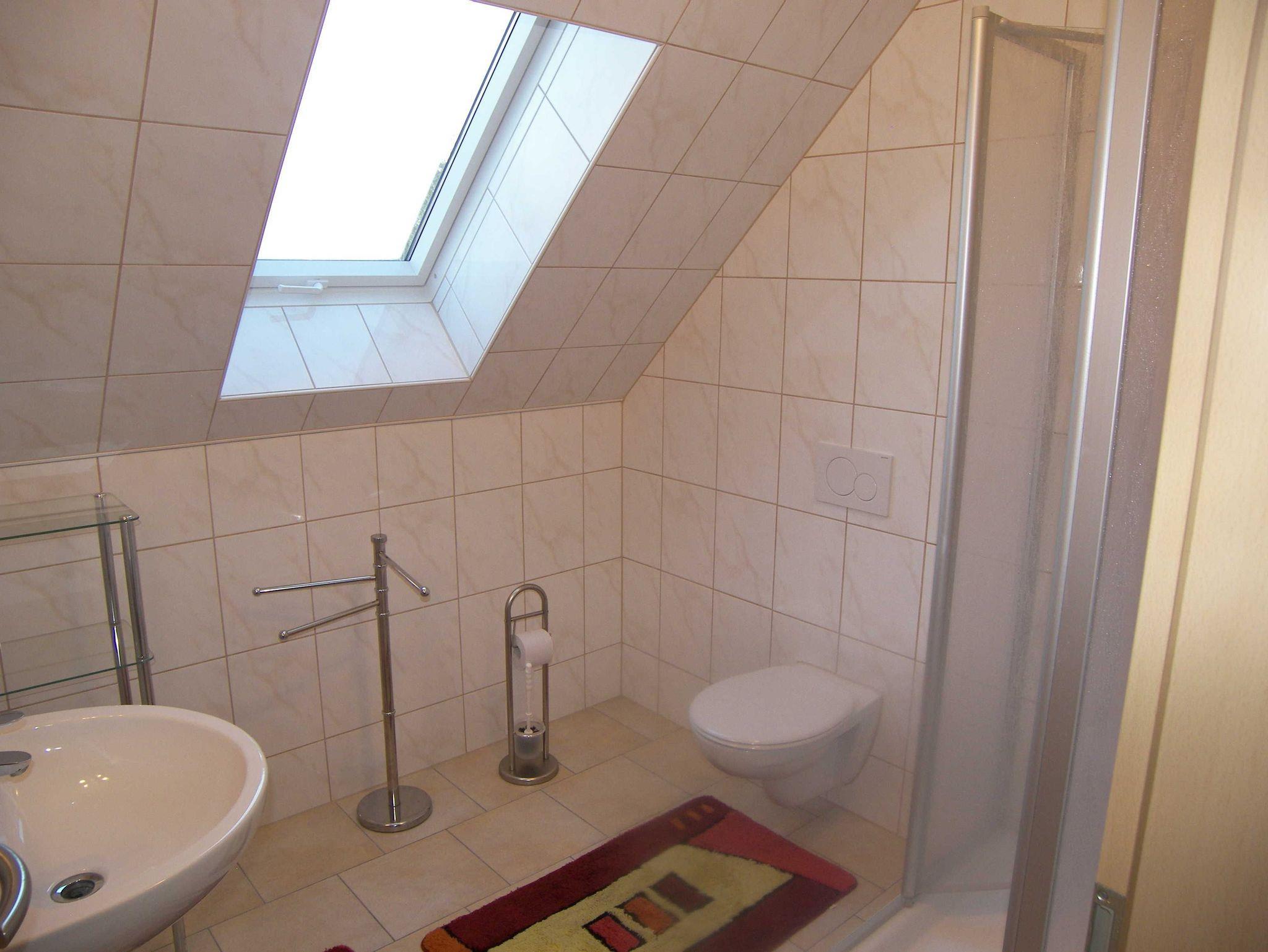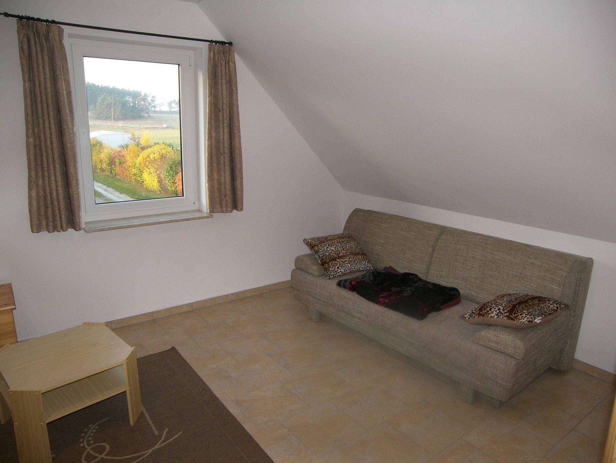 Im Obergeschoss befinden sich zwei Schlafzimmer, ein Schlafzimmer mit Doppelbett sowie angrenzendem Balkon und das zweite Schlafzimmer mit Doppelbett und einer zusätzlichen Couch, die als Aufbettungsmöglichkeit genutzt werden kann. Das Badezimmer im Obergeschoss verfügt ebenfalls über Dusche und WC.