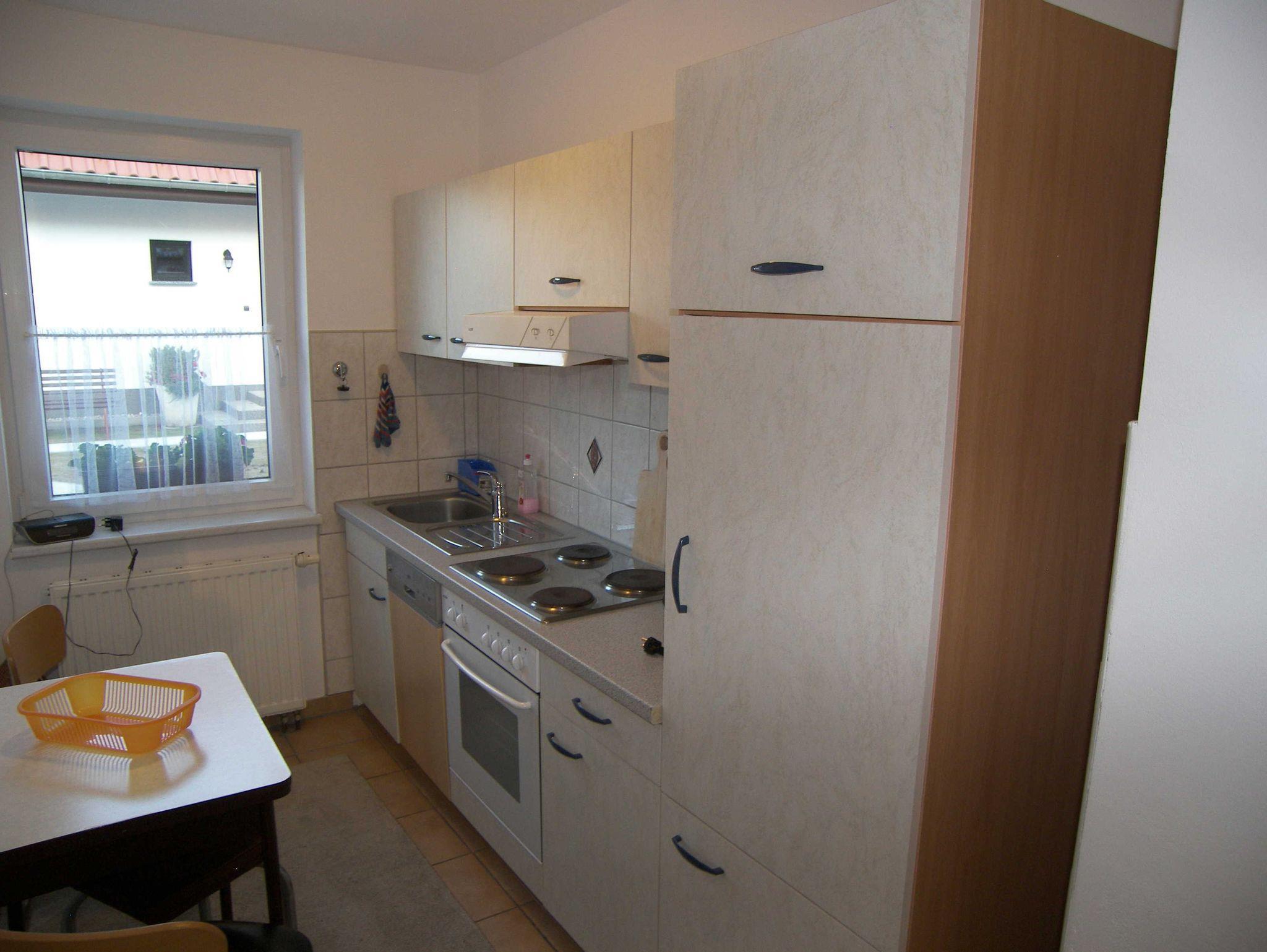 Die Wohnung verfügt über eine separate Küche mit 4 Platten-Herd mit Backofen, Wasserkocher, Toaster und Kaffeemaschine und einem kleinen Esstisch mit 2 Stühlen.