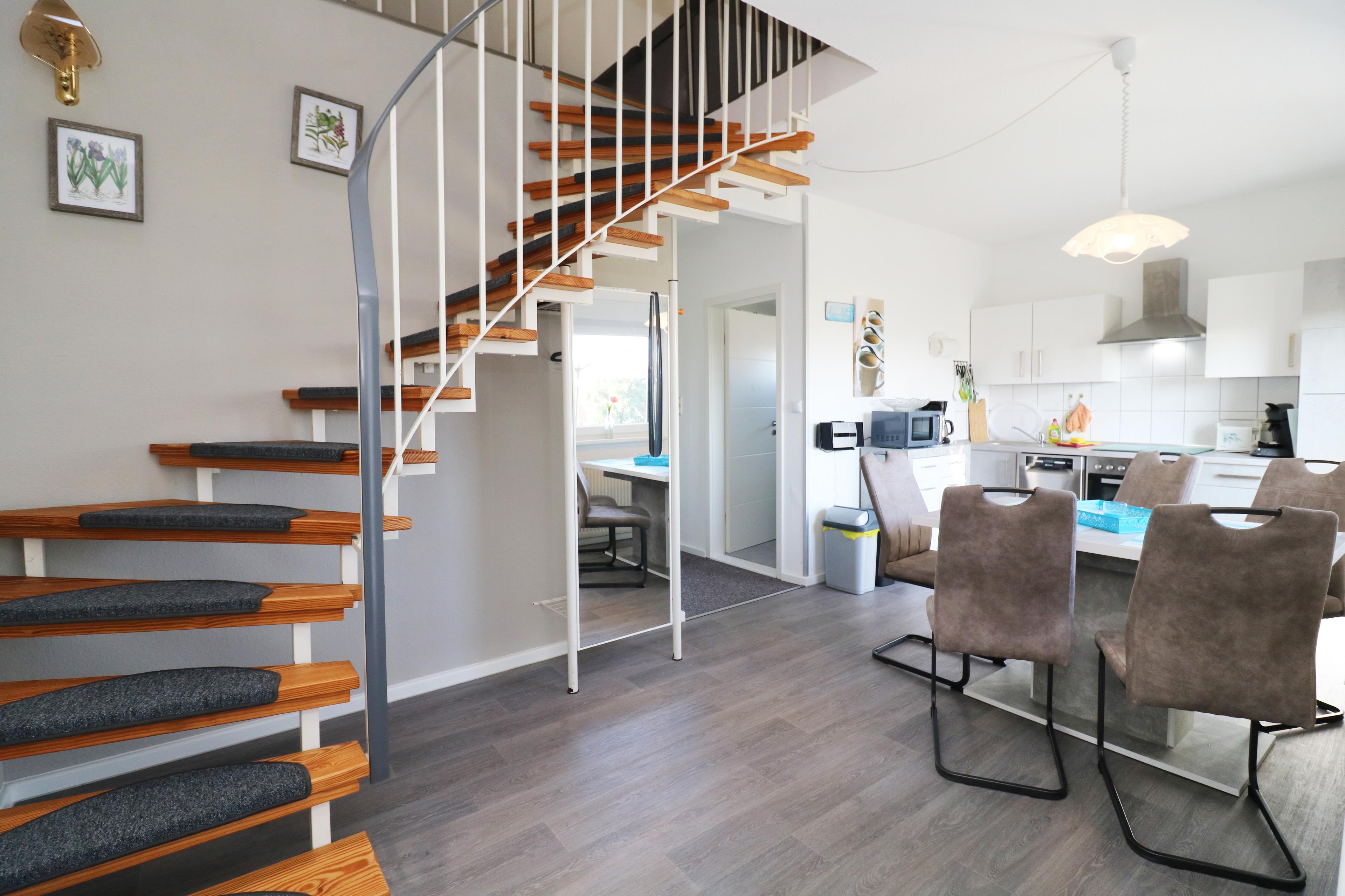 Sie möchten in einen schönen Umgebung zwischen Wald, Wiesen, Naturschutzgebiet Gnitz Achterwasser Ihren Urlaub genießen, dann sind Sie hier genau richtig im Ferienresort Lütow, in Nähe des Weißen Berges . Sie machen Urlaub in einem modern hergerichtetem Ferienhaus in Alleinlage, mit uneinsehbarer Terrasse, Grill, Terrassenmöbeln und Liegestühlen zum relaxen, Gartenhäuschen für Fahrräder , Pkw Stellplatz und viel viel Grün. Das Haus hat einen separaten Eingang, von dem gelangt man in die große geräumige und modern eingerichtete Küche mit Essplatz, und TV, dahinter befindet sich ein Bad mit WC, Dusche und modernen Badmöbeln. Weiterhin befinden sich dort 2 Schlafzimmer 1x mit Boxspringbett, Kleiderschrank, Nachtische und TV, 1 Einzelbett, 1 Boxspringbett und Kleiderschrank, Kinderreisebett und Kinderhochstuhl. Über eine Treppe gelangt man in das gemütliche Wohnzimmer mit moderner Wohnlandschaft, Kuschelsofa, moderner Beleuchtung, TV , Stereoanlage und einem Spiele- bzw. Essplatz.