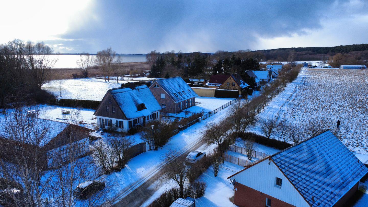 Lütow, ein kleiner verschlafener Ort, liegt im Süden der Halbinsel Gnitz direkt am Achterwasser, das hier vollständig von einem breiten Schilfgürtel gesäumt ist. In unmittelbarer Umgebung befindet sich das Naturschutzgebiet Südspitze Gnitz, ein Moränenkliff und dazugehöriges Strandwallsystem mit Erlenbruchwäldern und Weiderasen.