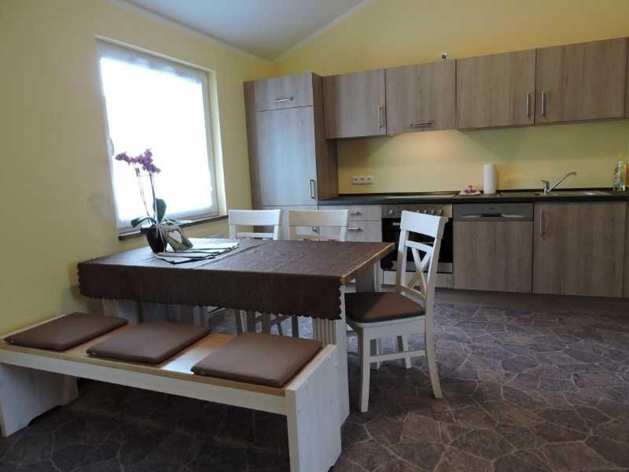 Direkt vor der Ferienwohnung ist eine Veranda mit Grill und gemütlicher Sitzgruppe. Von hier aus kann man schon mal Rehe am Waldrand oder Fledermäuse bei ihren abendlichen Runden beobachten.