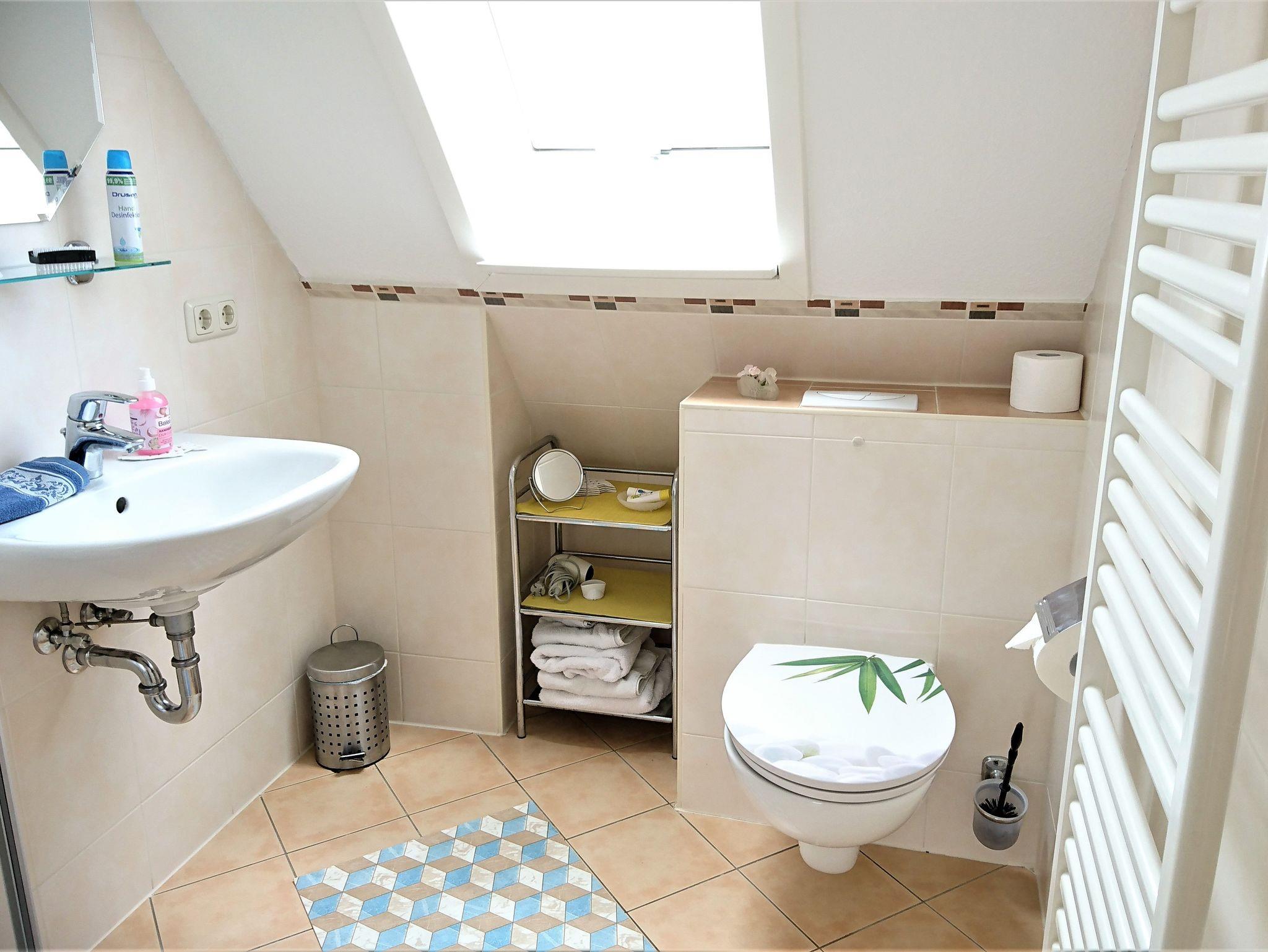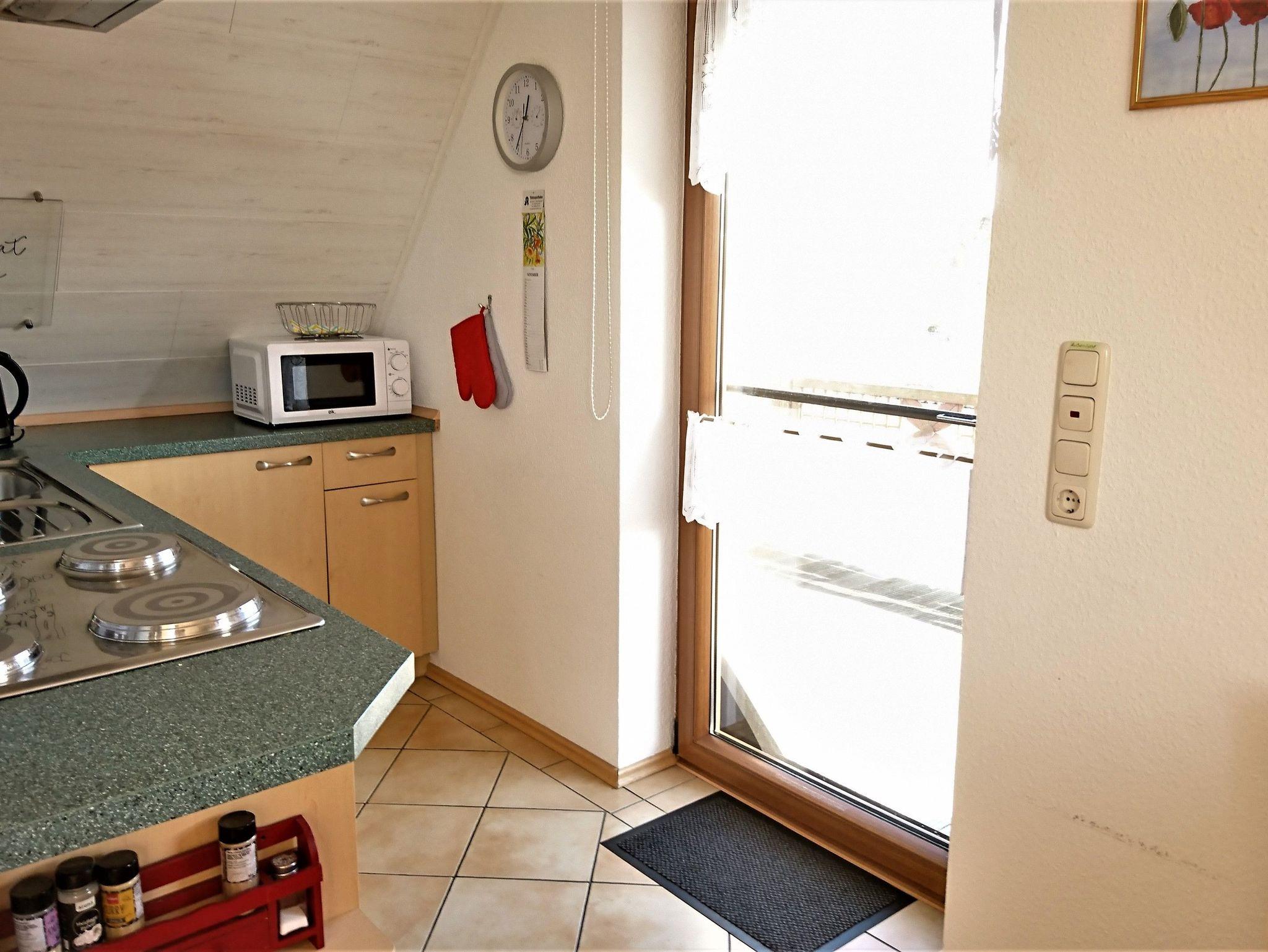 Schlafcouch im WZ, die Dachfenster haben von außen Sonnenschutzrollos), Du/WC, Fön u. Große Dachterrasse mit Gartenmöbel, Liegen und Elektrogrill. Hier ist man absolut ungestört, da niemand Einsicht auf die Terrasse haben kann.