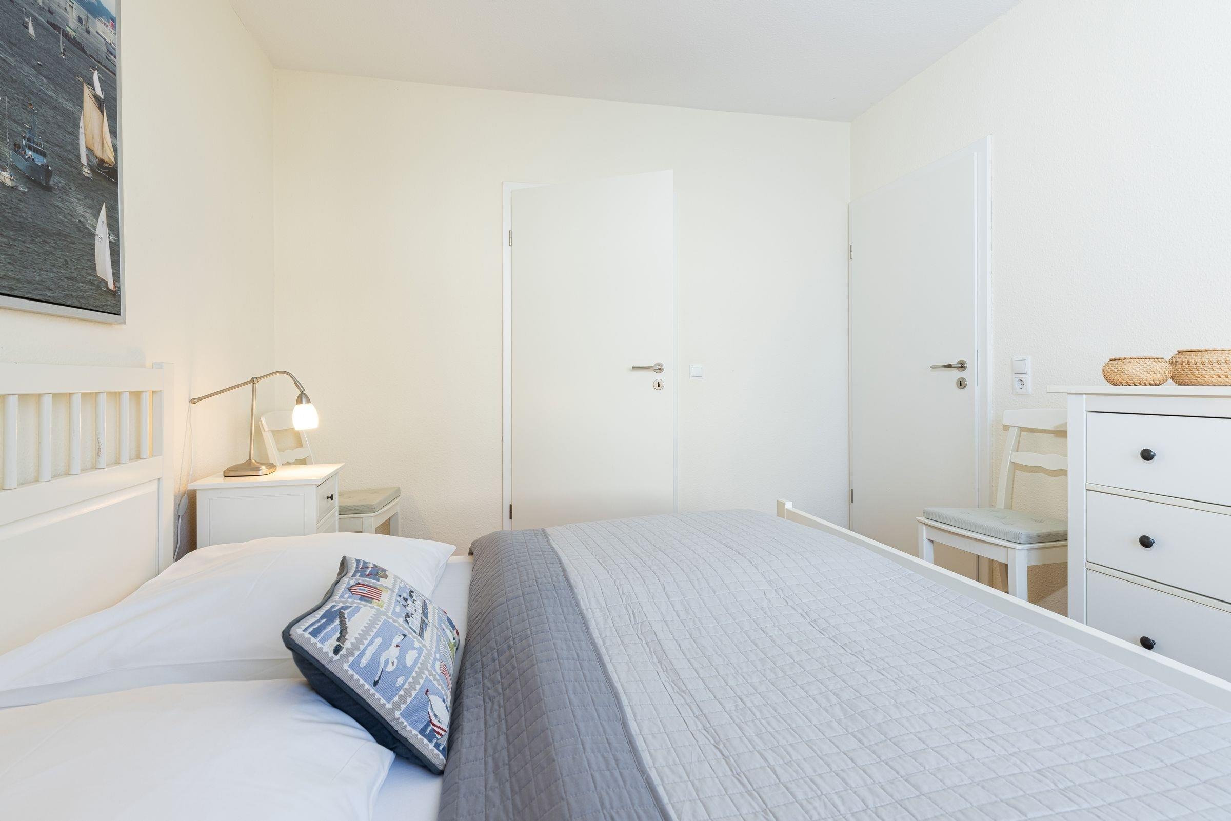 Aufgeteilt ist die 58 m² große Erdgeschosswohnung in ein Wohn-/Esszimmer mit komfortabler Schlafcouch und einer hochwertigen, offenen Einbauküche, einen Abstellraum und ein Schlafzimmer mit Doppelbett (180x200 cm) und begehbarem Kleiderschrank. Direkt neben dem Schlafzimmer befindet sich das geräumige, helle Duschbad. Von der großzügigen Terrasse aus haben Sie einen traumhaften Blick auf den Hafen von Laboe. Der feine Sandstrand und das Ortszentrum sind ebenfalls in nur wenigen Gehminuten zu erreichen.