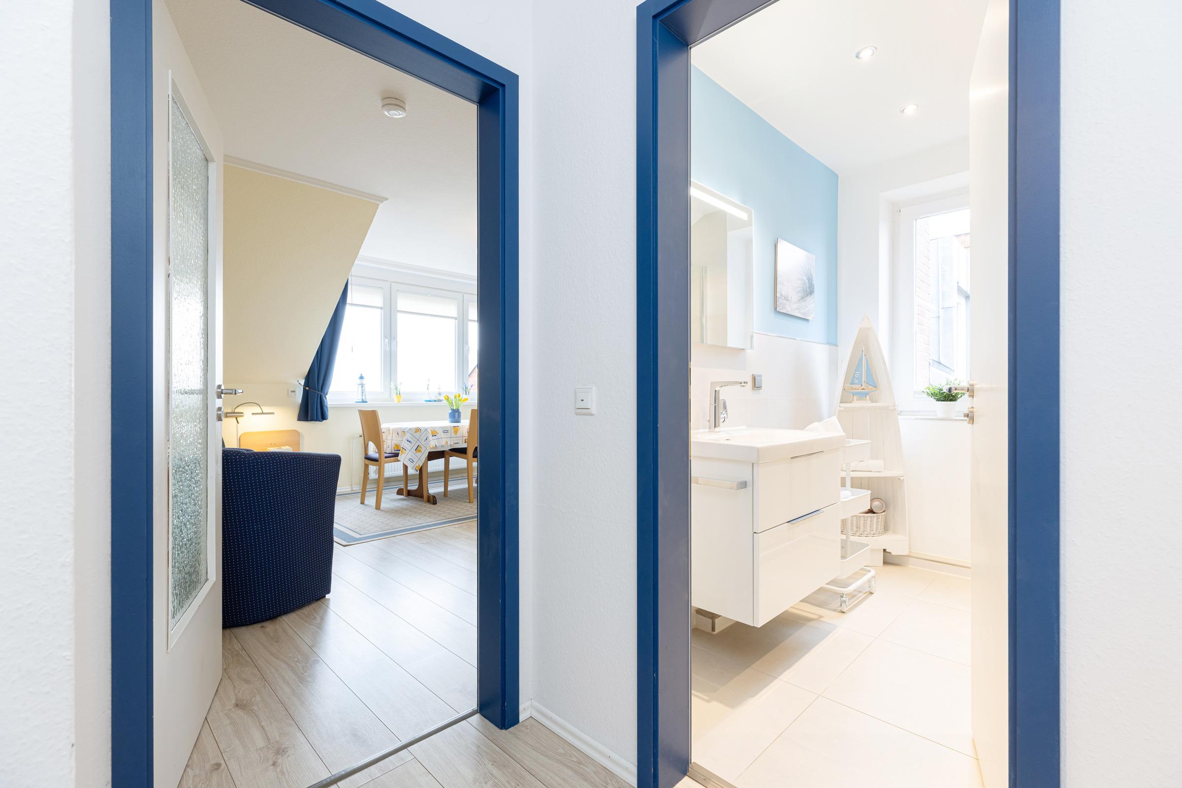 Das geschmackvolle und modern eingerichtete 3-Zimmer Appartement Ostseekrabbe liegt in der 2. Etage eines ansprechenden Appartementhauses direkt am neu gestalteten Hafen von Laboe. Die Wohnung ist großzügig geschnitten, so dass dort bis zu 4 Personen bequem Platz finden. Ein heller großer Flur führt zum kombinierten Wohn- Esszimmer mit Zugang zum Balkon. In der voll ausgestatteten offenen Küche haben Sie die Möglichkeit wie zu Hause zu kochen. Der geräumige Wohnbereich bietet Ihnen Platz für gesellige Stunden. Vom Wohnzimmer aus gelangen Sie auf den Balkon, der mit einer elektrisch betriebenen Markise ausgestattet ist und Ihnen an heißen Sommertagen Schatten spendet. Einen kleinen Vorgeschmack von dem traumhaften Ausblick sehen Sie in der Bildergalerie. Übrigens alle Front- und Balkonfenster sind mit Sonnenschutzrollos und elektrischen Außenrolläden ausgestattet . Vom Flur aus gehen die beiden separaten Schlafräume und das große Tageslicht helle Duschbad ab. Das eine Schlafzimmer mit Doppelbett ist maritim eingerichtet. Wogegen das andere Schlafzimmer auch als ruhiger Rückziehort oder Kinderzimmer genutzt werden kann. Hier haben Sie ein gemütlich eingerichtetes Zimmer mit einer Schlafcouch für 2 Personen, ein Einzelbett und den Ausblick auf die Kieler Förde.