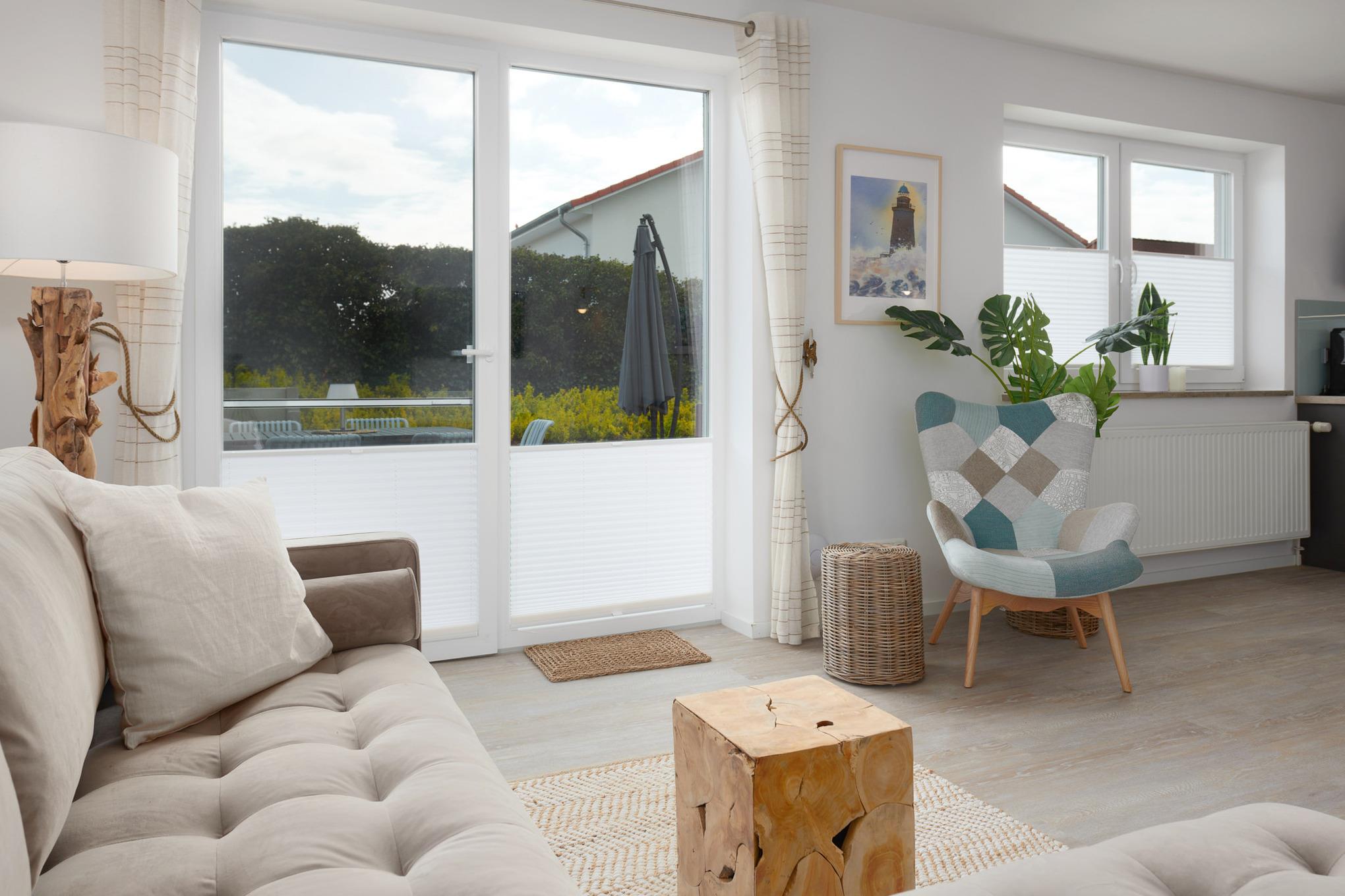 Die stilvolle Ferienwohnung überzeugt mit einem modernen Wohnbereich, der mit gemütlicher Sitzgruppe und großem Flatscreen-TV zum Entspannen einlädt. Von hier aus gelangen Sie direkt auf die sonnige Terrasse, die nach Süd-Ost ausgerichtet ist und mit Gartenmöbeln und einem Strandkorb zum Frühstück im Freien oder entspannten Stunden am Abend einlädt. Auch Grillen ist hier erlaubt. Die offene Küche ist voll ausgestattet und bietet neben einem Backofen, Induktionsherd, Geschirrspülmaschine und Kühlschrank auch eine Mikrowelle, Kaffeemaschine und Toaster – ideal für die Selbstversorgung im Urlaub. Im Essbereich finden alle Gäste bequem Platz. Zwei separate Schlafzimmer, jeweils mit komfortablen Doppelbetten ausgestattet, sorgen für erholsame Nächte. Das Badezimmer bietet eine bodengleiche Dusche, WC, Haartrockner, Kosmetikspiegel sowie einen beheizbaren Handtuchhalter und lässt keine Wünsche offen.