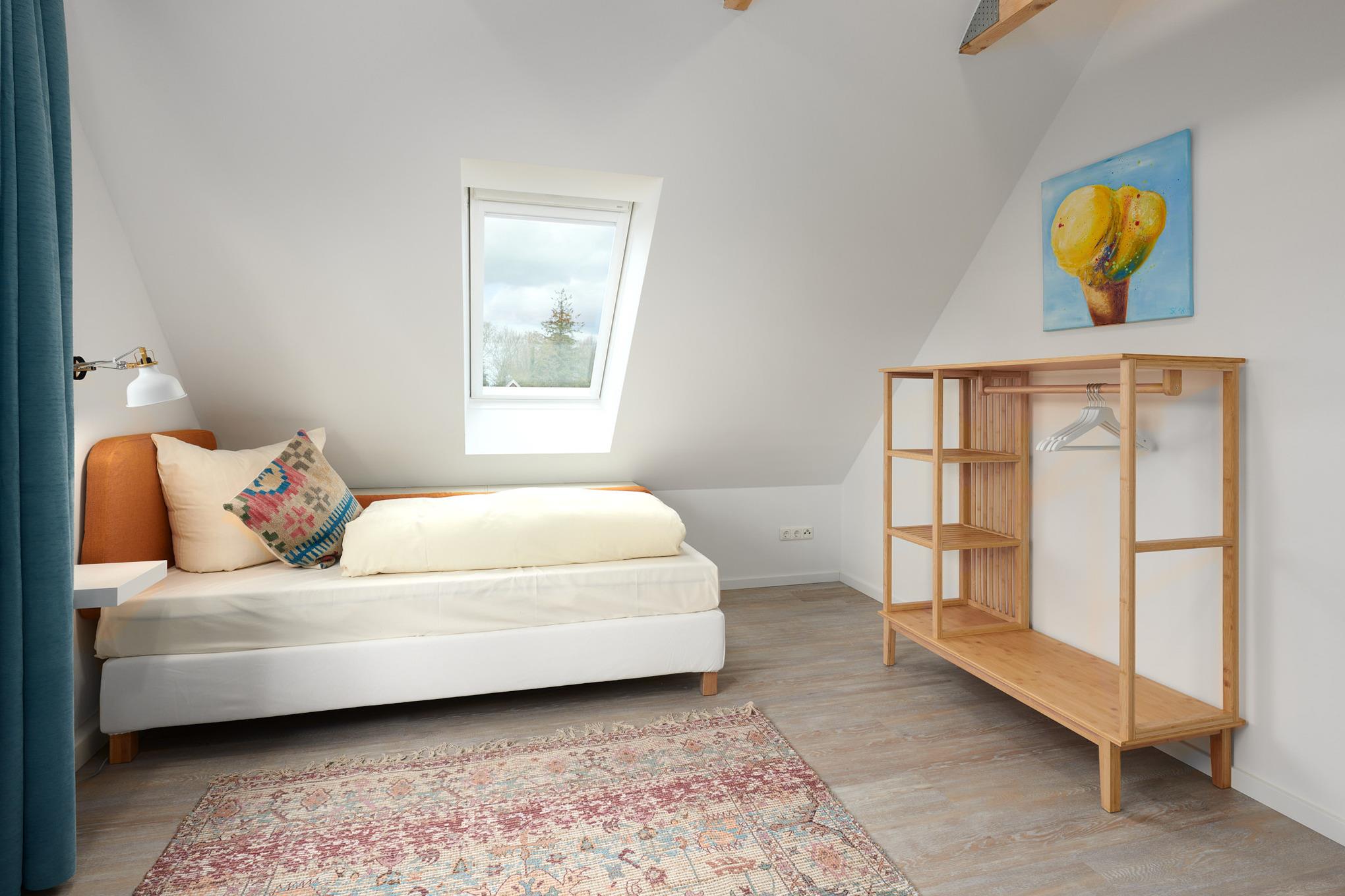 Schlafzimmer 3 (2. OG): 2 Einzelbetten (je 90x200 cm), Kleiderschrank, Verdunkelung: Plissee und Gardinen, Platz für ein Babybett vorhanden