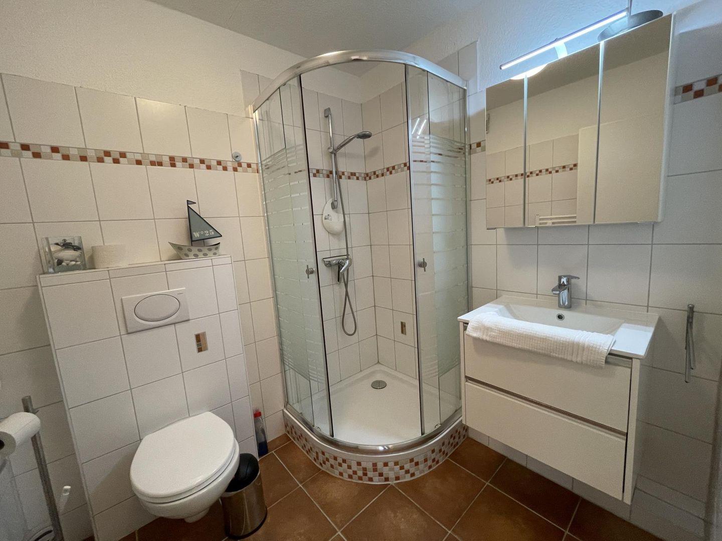 Im Schlafzimmer schläfst du im bequemen Doppelbett – ruhig gelegen, fernab vom Ferientrubel. Das Bad ist mit Dusche und WC funktional ausgestattet – kein Schnickschnack, aber alles, was du brauchst.