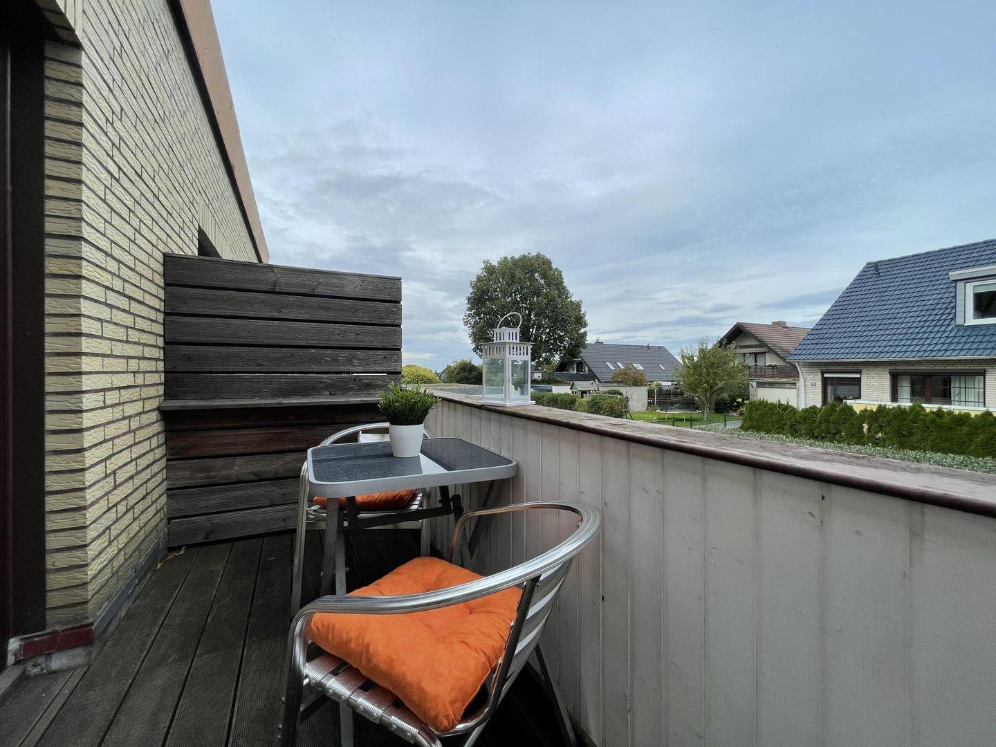 Das stille Highlight ist der Balkon mit Fördeblick in der Ferne. Ein Platz für Morgenkaffee, Abendbrot oder einfach nur zum Verschnaufen. Dein Auto parkst du sicher und bequem auf dem festen Stellplatz direkt am Haus.