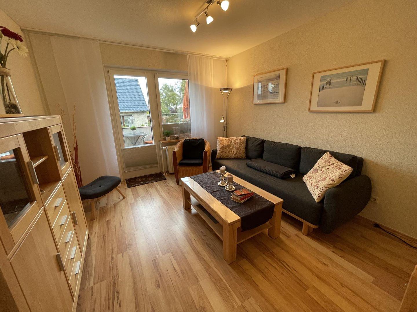 Die Wohnung im ersten Obergeschoss bietet dir auf zwei Zimmern und 50?m² alles, was du für deine Auszeit brauchst. Im Wohnzimmer wartet eine bequeme Sitzgruppe mit Schlaffunktion auf dich – gut geeignet für ein oder zwei weitere Gäste. Fernseher, WLAN, Stereoanlage und ein DVD-Player sind natürlich vorhanden.