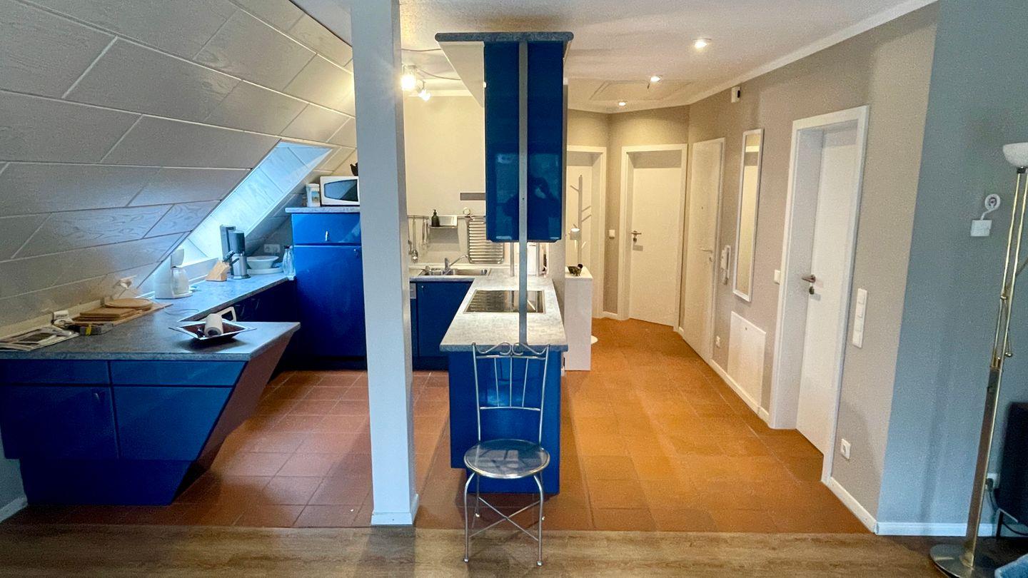 Die offene Küche ist direkt zum Wohnzimmer gestaltet und vollständig für die Selbstversorgung ausgestattet: Ceran-Herd, Backofen, Mikrowelle, Kühlschrank sowie ein extra Gefrierschrank stehen ebenso bereit wie Spülmaschine, Kaffeemaschine, Wasserkocher, Toaster, Küchenutensilien sowie Geschirr und Besteck; Geschirrhandtücher sind ebenfalls vorhanden. Für längere Aufenthalte profitierst Du zusätzlich von einer Waschmaschine, Wäscheständer und Staubsauger.