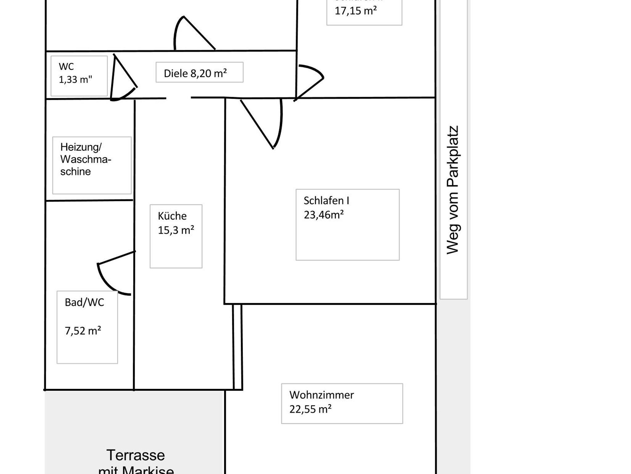 Die Wohnung ist aufgeteilt in Wohnzimmer und 2 Schlafzimmer mit 4 Einzelbetten sowie einer Doppelbettcouch und einem Kinderbett, einer Küche die keine Wünsche offen lässt, Bad mit Dusche (Kopfbrause) und WC sowie ein zusätzliches externes WC.