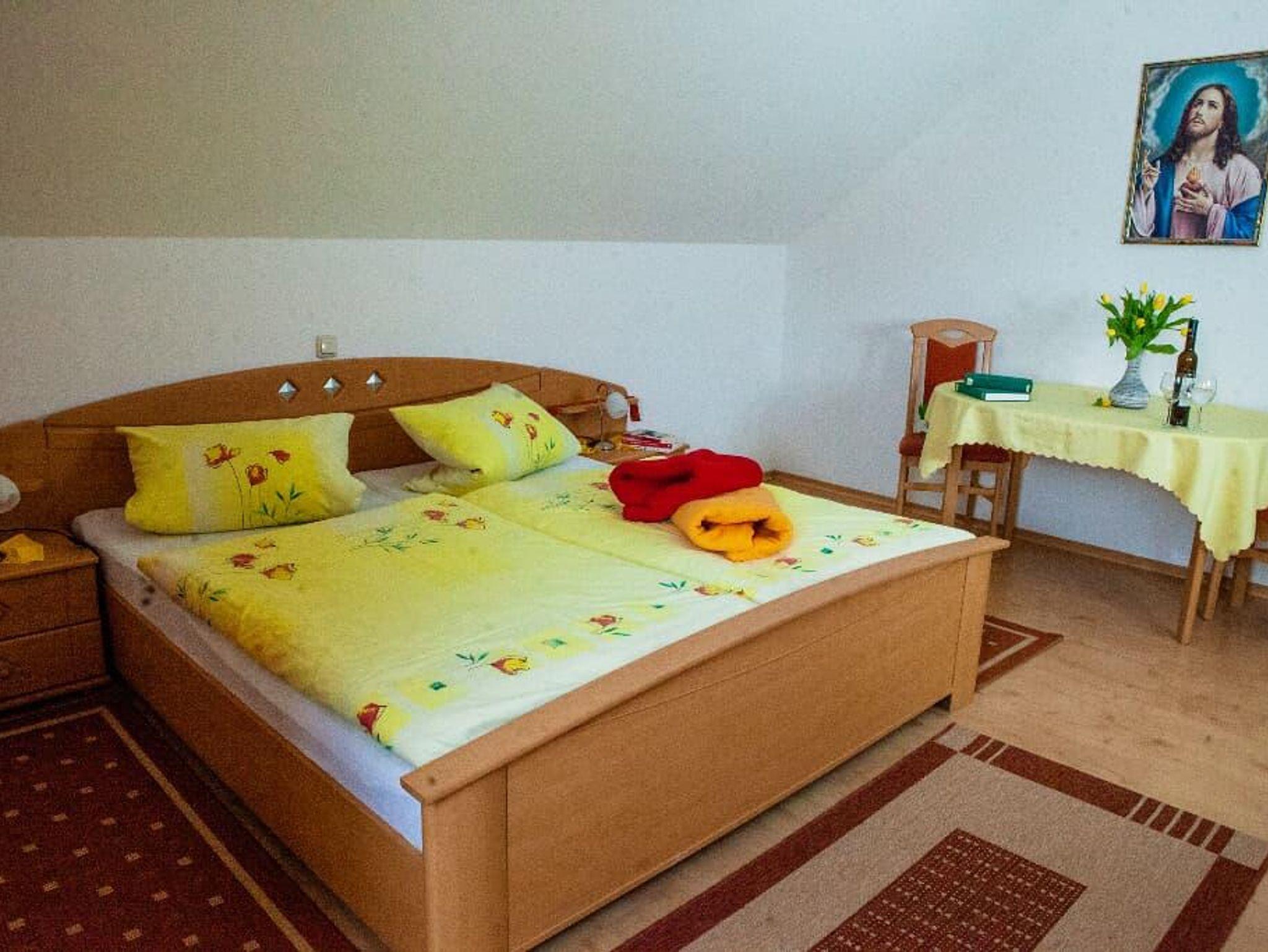 Unsere freundliche und helle Ferienwohnung Blick auf den Hohen Bogen mit 50m2 Wohnfläche Platz für 4 Personen. Die Ferienwohnung verfügt über 2 Schlafzimmer mit jeweils einem bequemen Doppelbett und Zugang zum Balkon. Das gemütliche Wohnzimmer mit Schlafsofa und Flachbild-TV lädt zum Verweilen ein. Die komplett ausgestattete Küche mit Kühlschrank, Herd, Toaster, Kaffeemaschine und Backofen lässt keine Wünsche offen. Die beiden Badezimmer mit Dusche und WC runden das Gesamtbild ab. Vor allem im Sommer können Sie entspannte Abende auf dem Balkon verbringen. Das WLAN und den Parkplatz vor dem Haus können Sie kostenfrei nutzen.