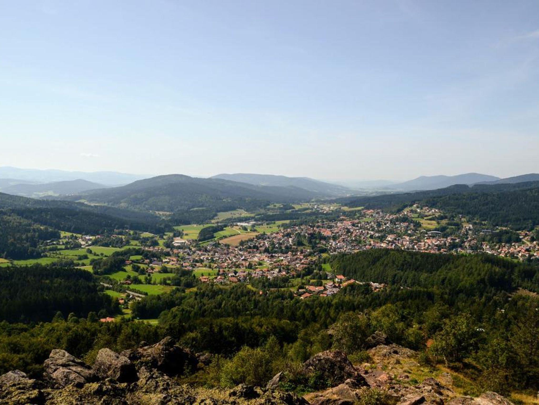 Die traumhafte Lage unmittelbar am Fuß des Osser ermöglicht den Blick über den gesamten Lamer Winkel und die Bergkette der „Acht Tausender“ vom Kaitersberg bis zum Großen Arber (1465m).