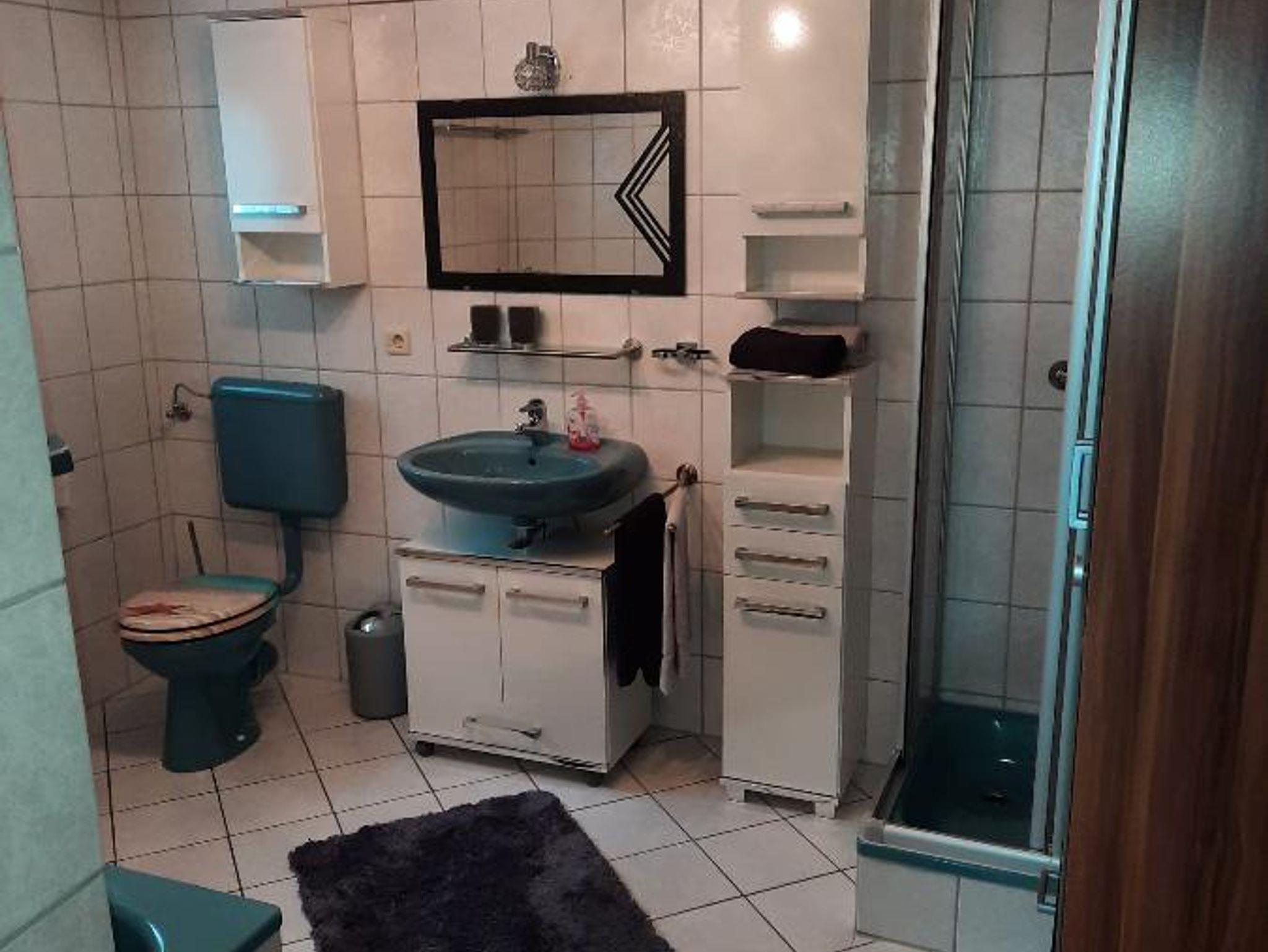 Unsere Wohnung Rosa (EG) hat eine Wohnfläche von 75 qm, zwei Schlafzimmer, Wohnküche mit kompletter Ausstattung, Couch, Flachbild-TV, Bad mit Dusche/Badewanne, Föhn, Gäste WC, Flur mit Garderobe.