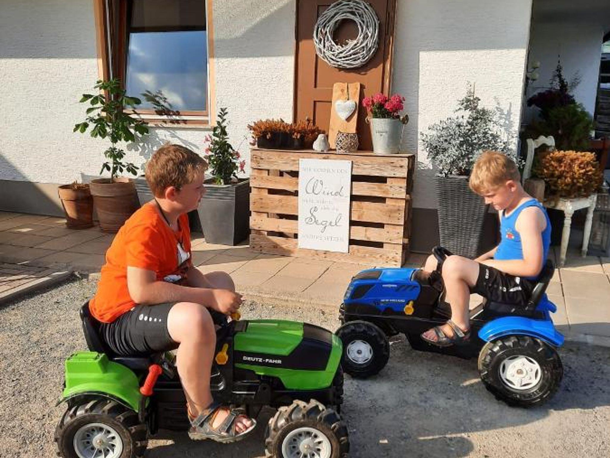 Spielwiese mit Spielgeräten, Tretfahrzeugen, Trampolin stehen kostenlos zur Verfügung. Traktorfahrt mit unseren Oldtimern nach Absprache.