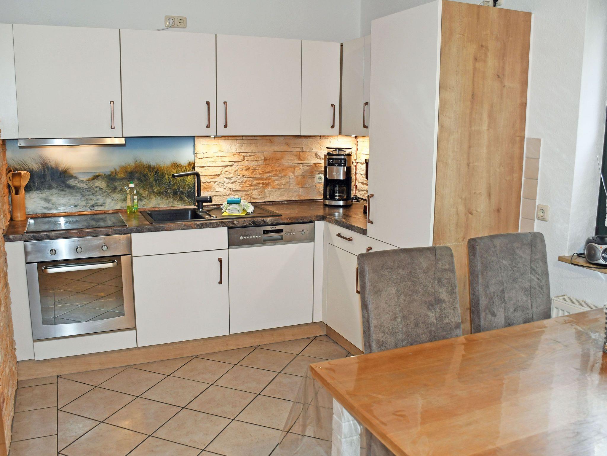 Voll ausgestattete Küche, 27 qm mit Kühlschrank, Gefrierschrank, Herd mit Ceranfeld und Backofen, Geschirrspüler, Kaffeemaschine, Toaster, Wasserkocher etc.