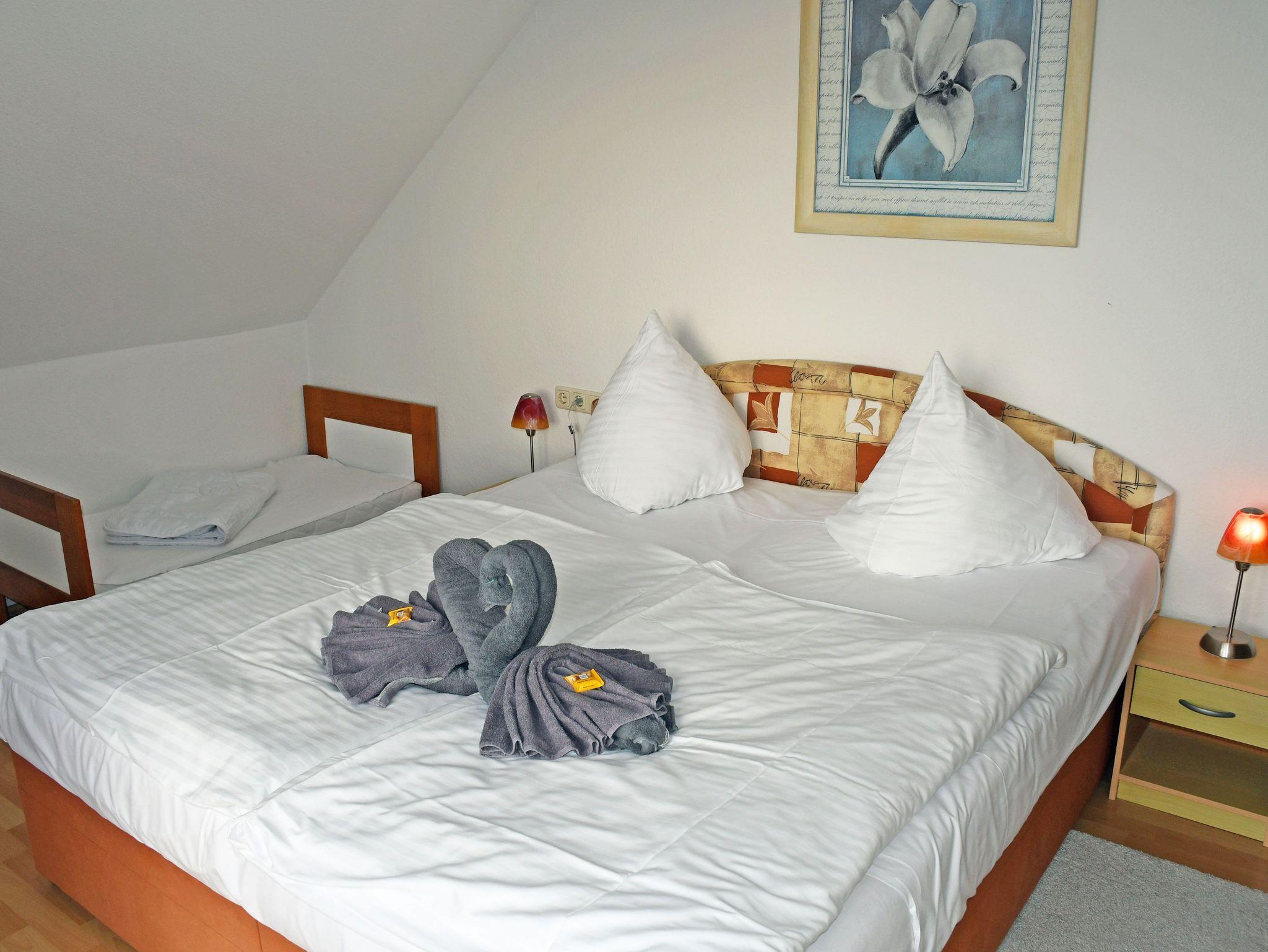 Bei Ihrer Anreise sind die Betten selbstverständlich bereits mit Bettwäsche bezogen und frische Handtücher liegen bereit.