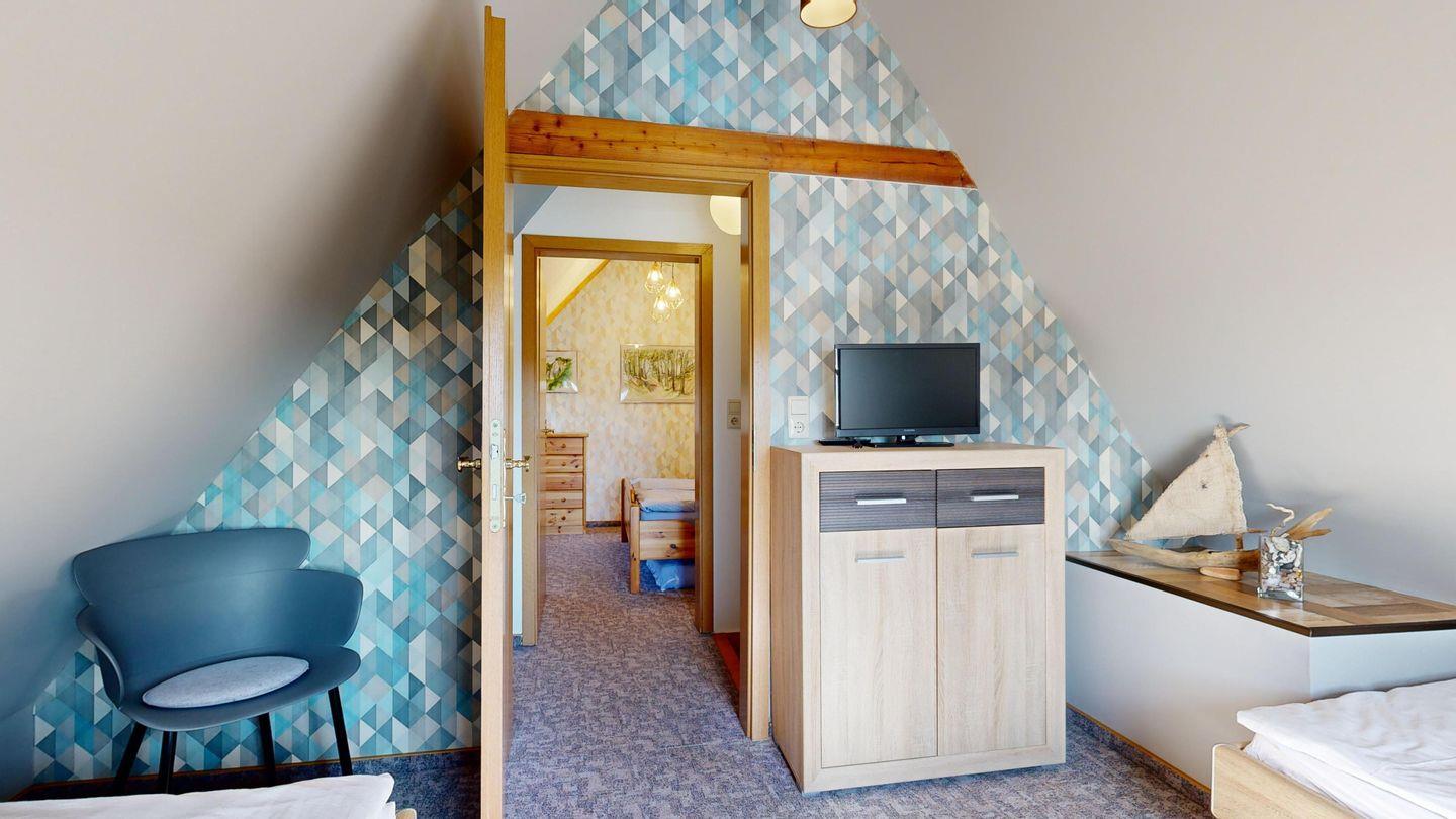 * 1 Schlafzimmer mit zwei Einzelbetten und Sat-TV