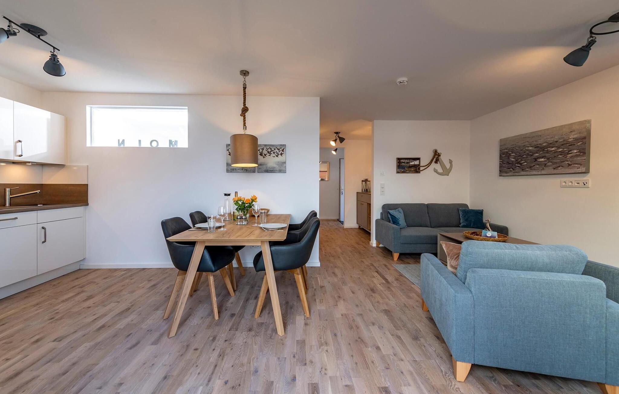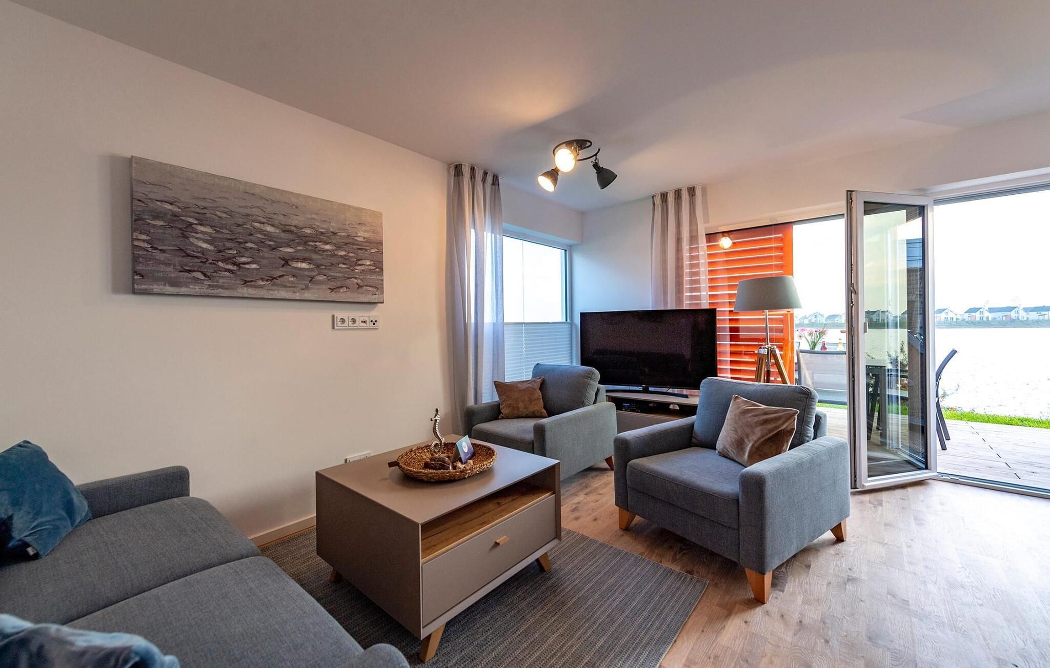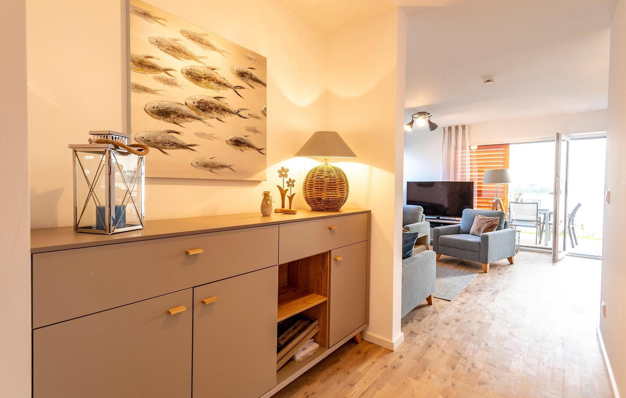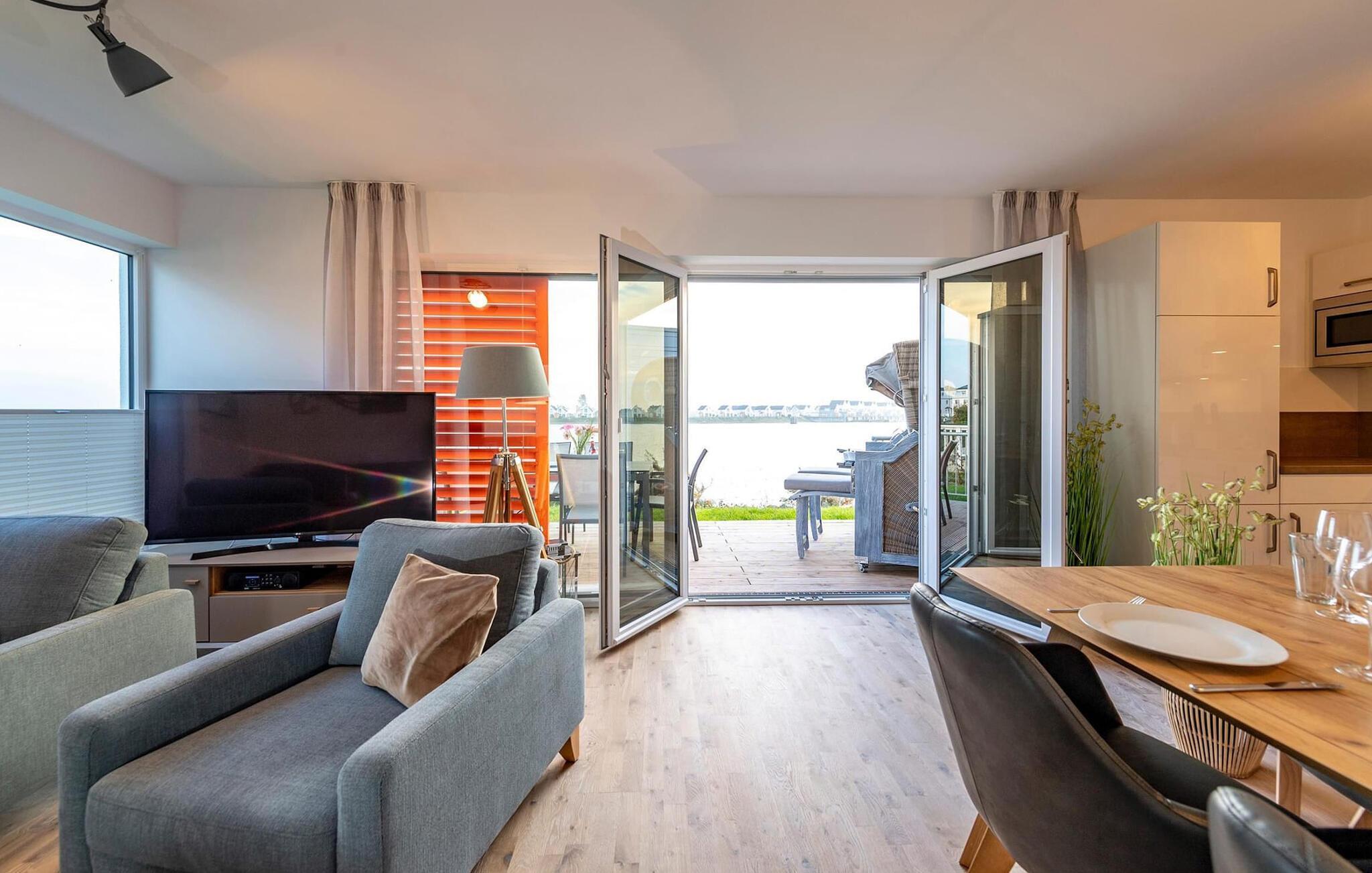 Forbipasserende seilskuter bidrar til å skape en maritim atmosfære i dette feriehuset. Nærmere havet kan du ikke komme. Fra stuen og den tilstøtende terrassen har du en spektakulær utsikt over marinaen. Havnekinoen sørger for underholdning under en hyggelig grillkveld eller en romantisk middag med levende lys.