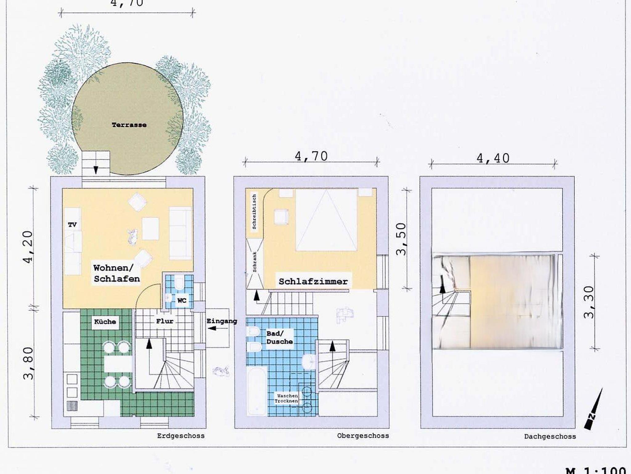 • 1 offene Küche mit Kühlschrank, Gefriermöglichkeit, Backofen, Kaffeemaschine und Essecke