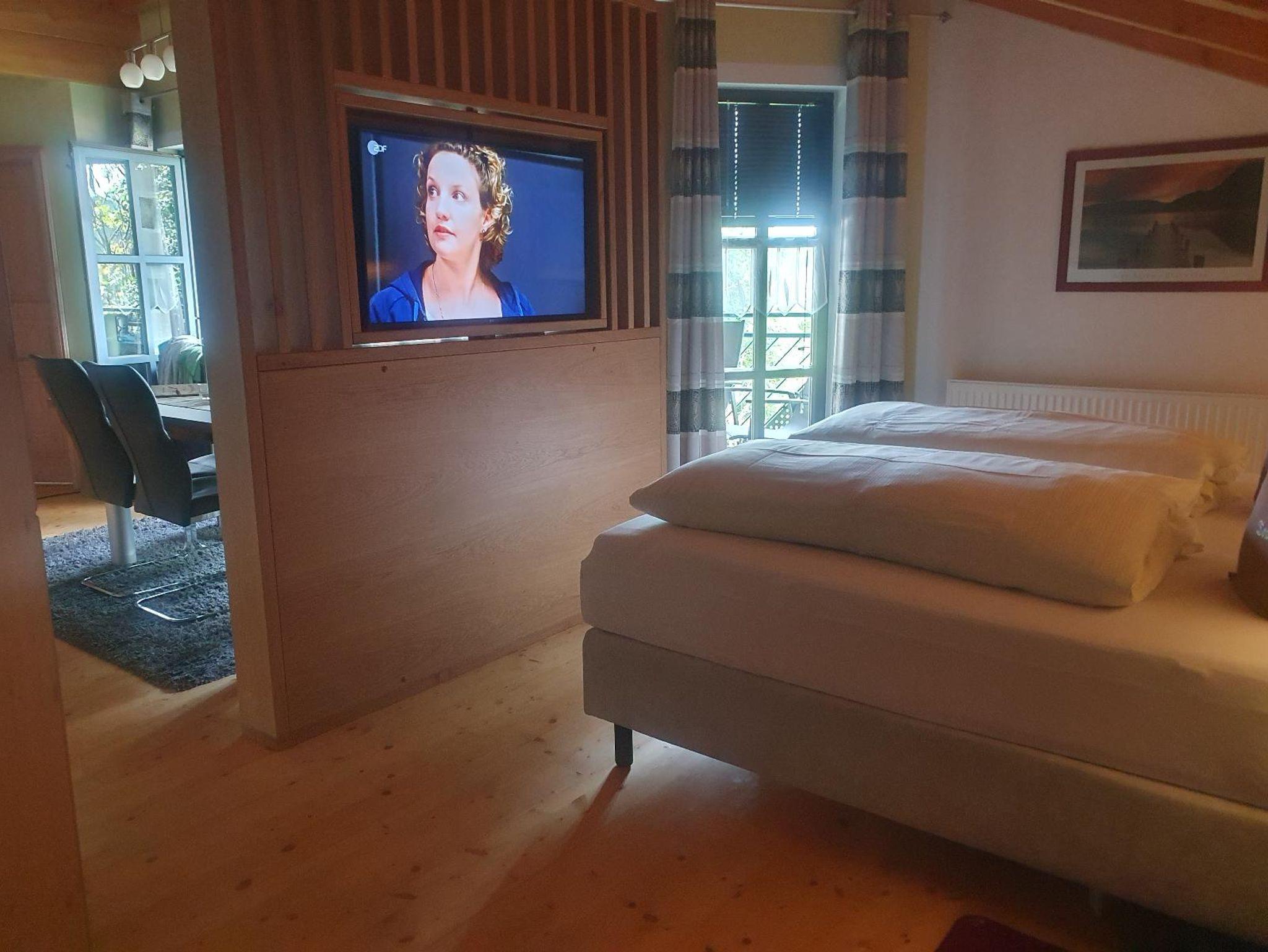 Es steht ein 43-Zoll-Flachbildschirm sowie Alexa und kostenloses WLAN zur Verfügung.