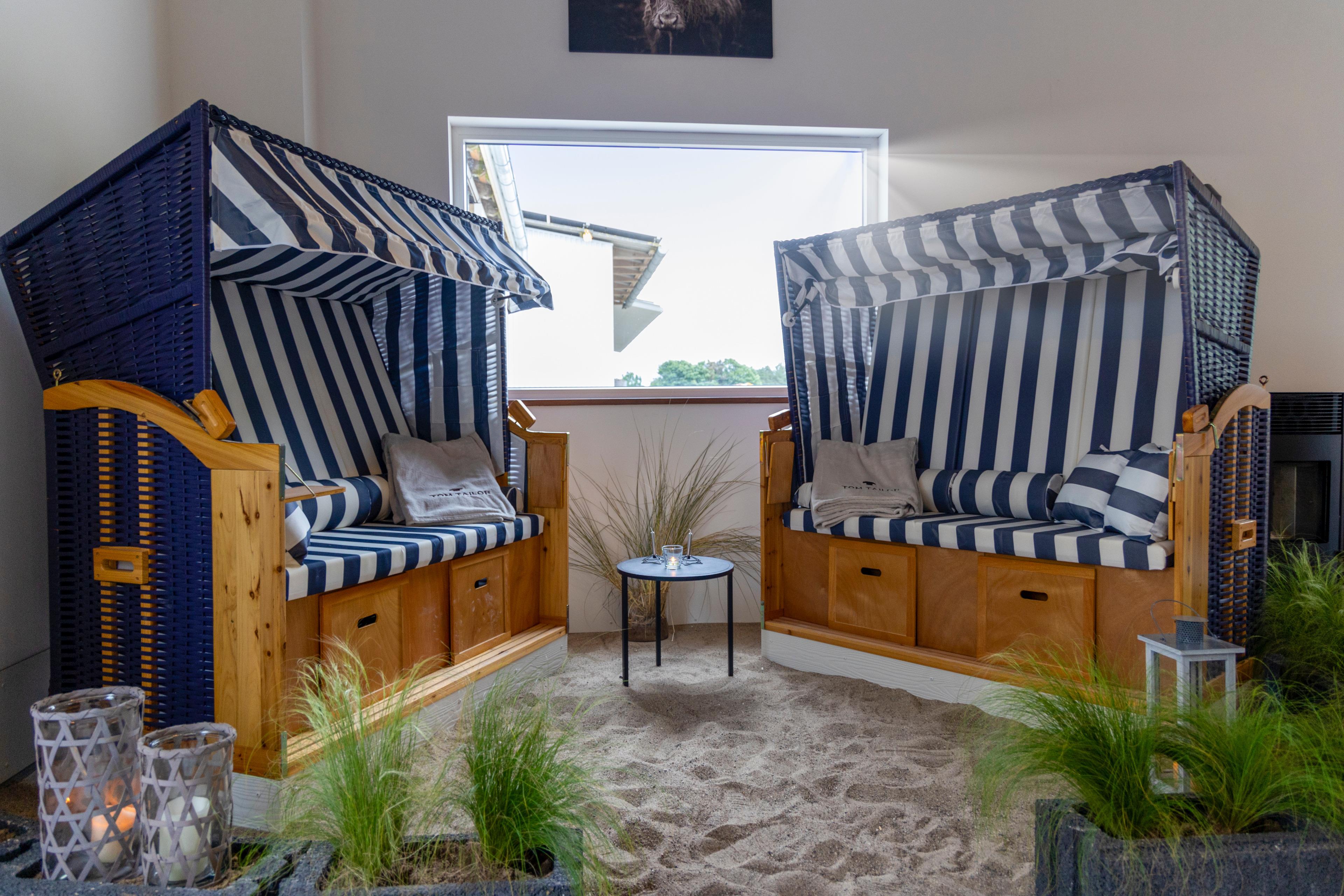 Eine Fußbodenheizung sorgt im ganzen Haus für wohlige Wärme und eine Klimaanlage rundet das ganze ab. In den stilvollen Bädern finden Sie bodengleiche Duschen und Infrarotkabinen, die nach einem erfrischenden Tag an der Nordsee zum Aufwärmen einladen. Genießen Sie ein Glas Wein bei Kerzenschein und entspannen Sie anschließend im bequemen Boxspringbett, vielleicht mit einem Film auf dem großen Flachbildfernseher.