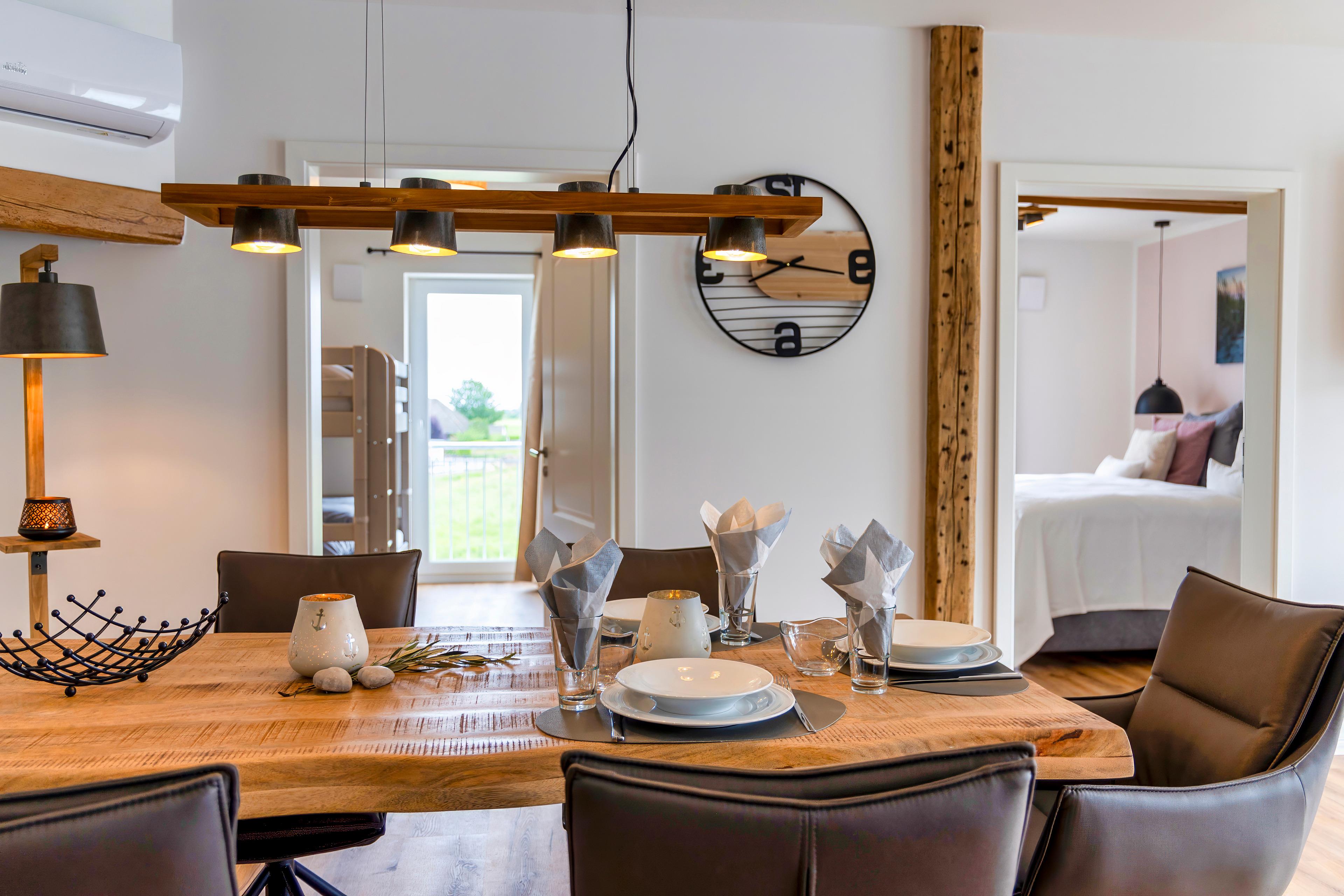 Unser außergewöhnliches Feriendomizil, 2024 aus einem ehemaligen landwirtschaftlichen Gebäude erschaffen, bietet Ihnen modernen Wohnkomfort, ohne den traditionellen Charme zu verlieren. Mit viel Liebe zum Detail wurden die alten Balken aufwendig restauriert und erhalten, um eine einzigartige Atmosphäre zu schaffen. Die Wohnungen sind hell, modern und luxuriös eingerichtet.