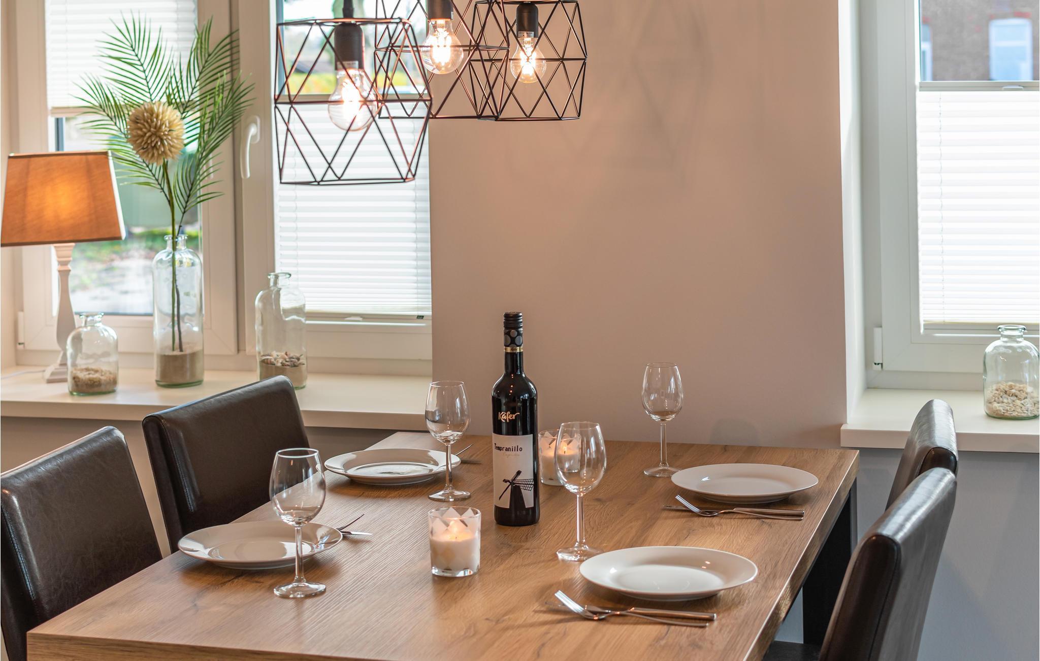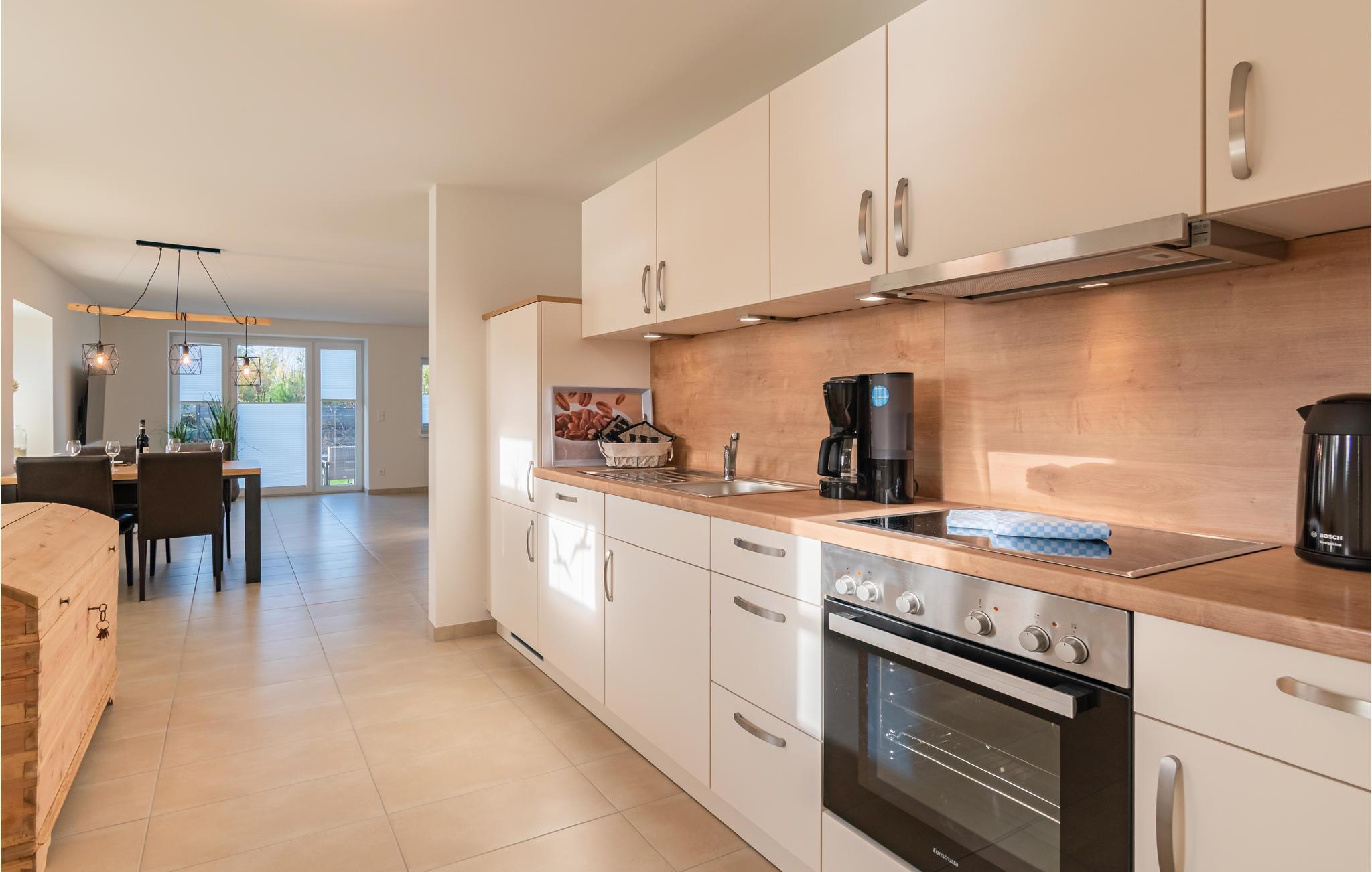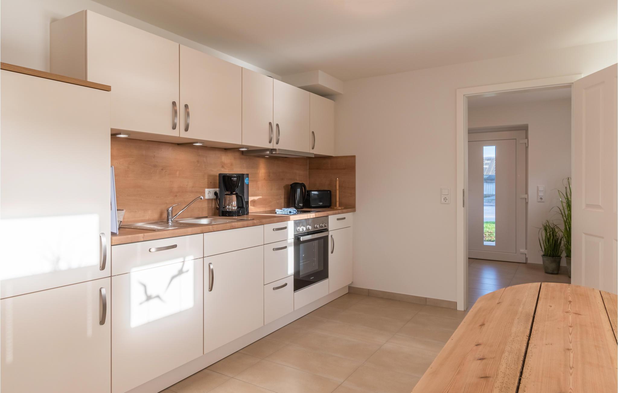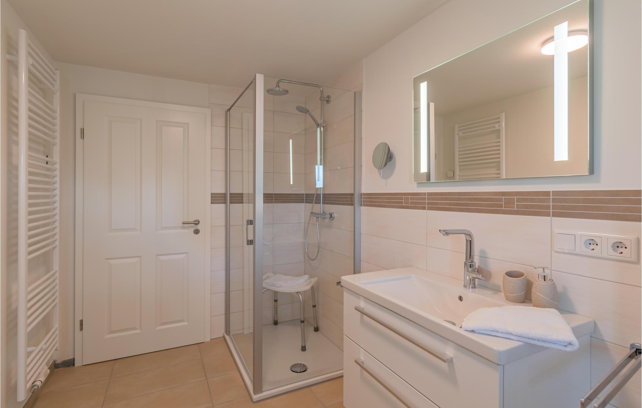 På terrassen kan du grille i solen og nyte Nordsjø-luften. Det store badet mangler ikke noe, og det er også gulvvarme i hele leiligheten. Nyt utsikten over det vidstrakte nordfrisiske landskapet med en bok eller et glass vin, og la hverdagen bli hjemme.