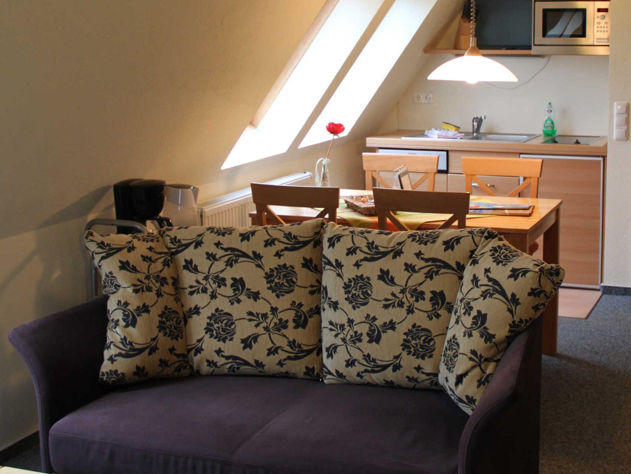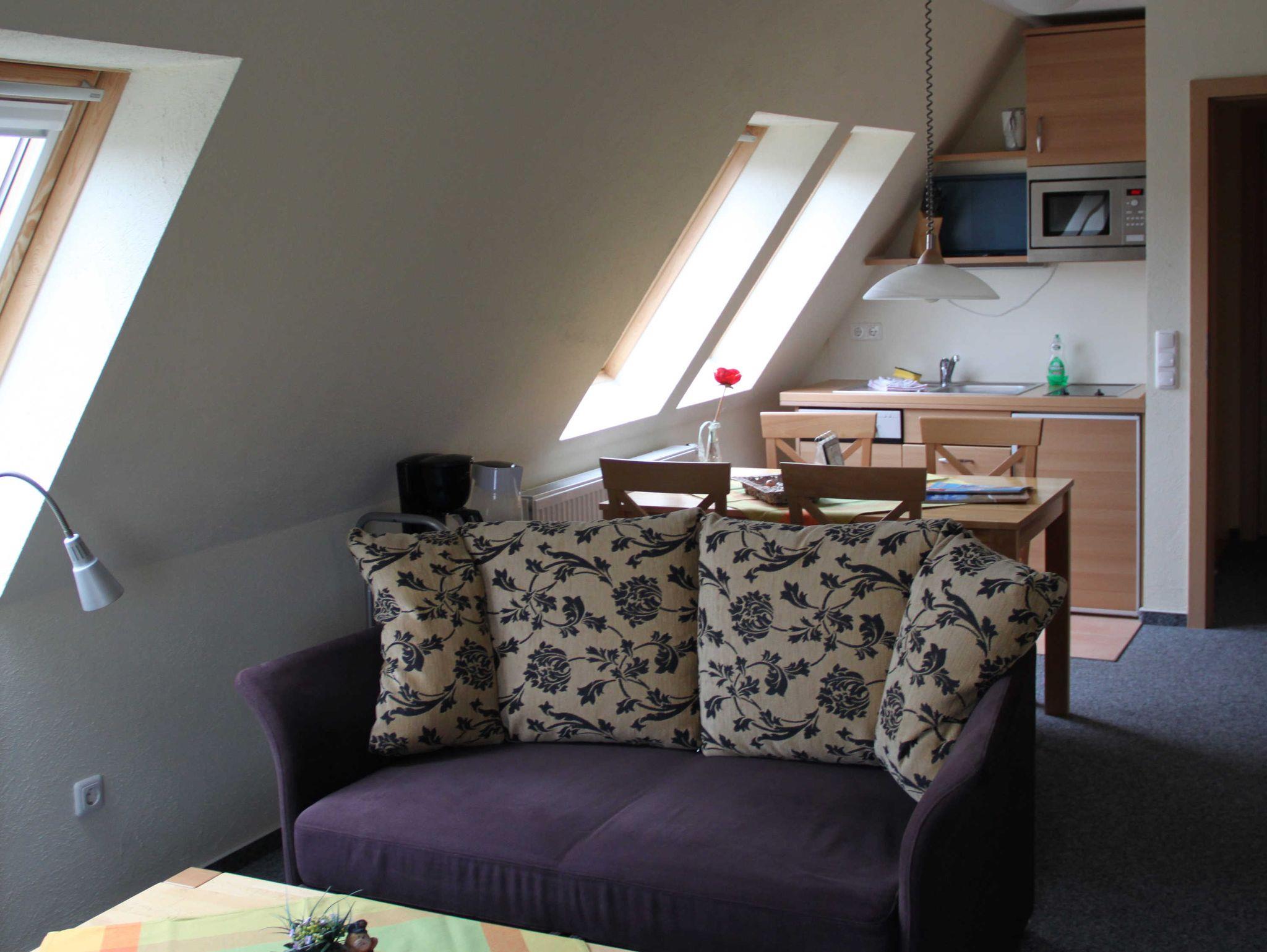 Dieses Apartment ist mit 31m² ideal für einen Urlaub von bis zu maximal 3 Personen. Das freundliche Tageslichtbad ist modern ausgestattet. Der Wohn- und Essbereich ist freundlich gestaltet. Es ist kein separates Schlafzimmer vorhanden. Eine dritte Person kann auf dem Schlafsofa schlafen.