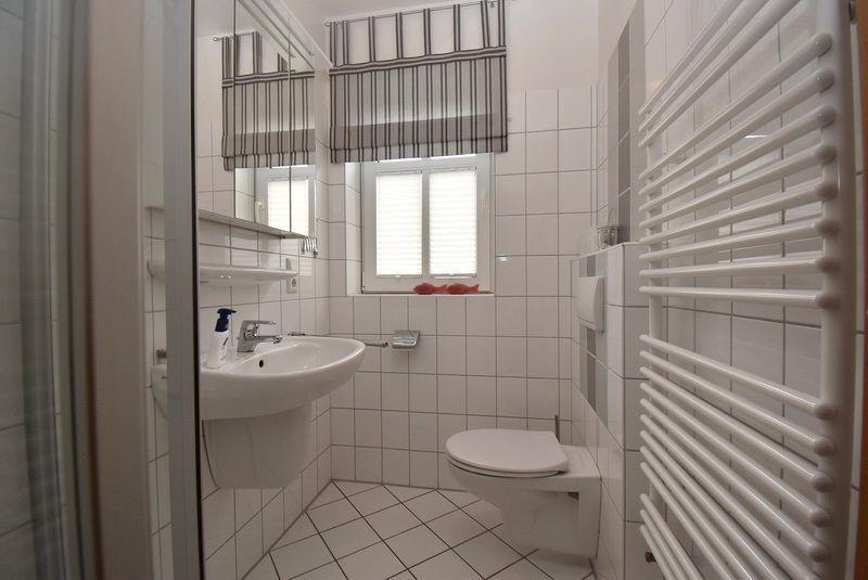 Die INSELROSE erstreckt sich über drei Etagen. Im Erdgeschoß empfängt Sie die großzügige vollausgestattete Küche mit angrenzendem Essbereich. Angrenzend geht es dann weiter in dem Wohnbereich mit der gemütlichen Couch für gemütliche Fernsehabende und Blick in den schönen Garten. Dieser lädt mit der möblierten Südterrasse mit Sonnenschirm und Windschutz sowie den bequemen Relaxliegen zum entspannen ein. Im Eingangsbereich finden Sie eines der beiden Bäder mit Dusche, Waschtisch und WC - das andere befindet sich im Obergeschoß - dort sind des weiteren zwei Schlafzimmer - davon eines mit einer möblierten Loggia in Südausrichtung und einem Doppelbett (180x200). Das zweite hat als Einzelbett (90x200) und ausgezogen als Doppelbett (140x200). Im Dachgeschoß ein weiteres mit einem Doppelbett ( 180x200 ).