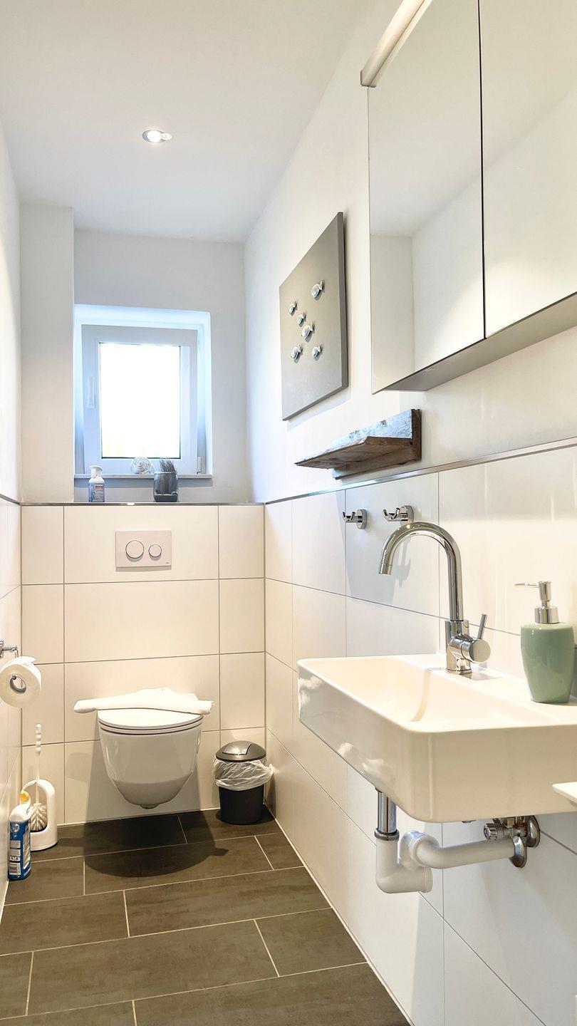 Desweiteren bietet das Appartement eine kleine Küche diese grenzt an das tolle, neue Bad mit bodengleier, großer Dusche, Waschtisch und WC.