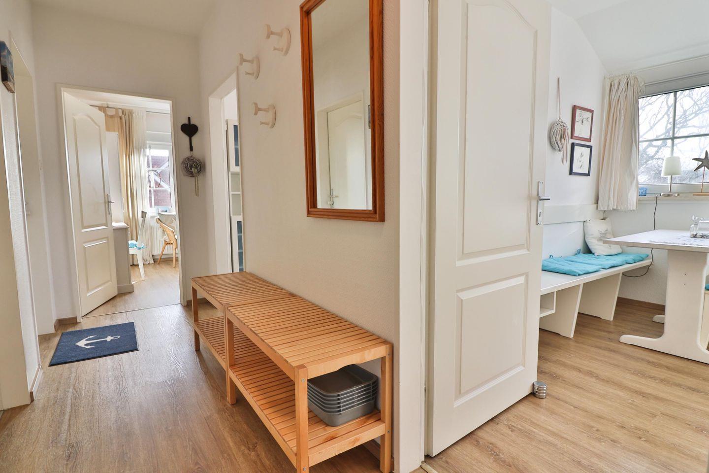 Die Ferienwohnung „Strandhaus Blume“ liegt zentral und ortsnah in einem Mehrparteienhaus in der Mittelstraße.