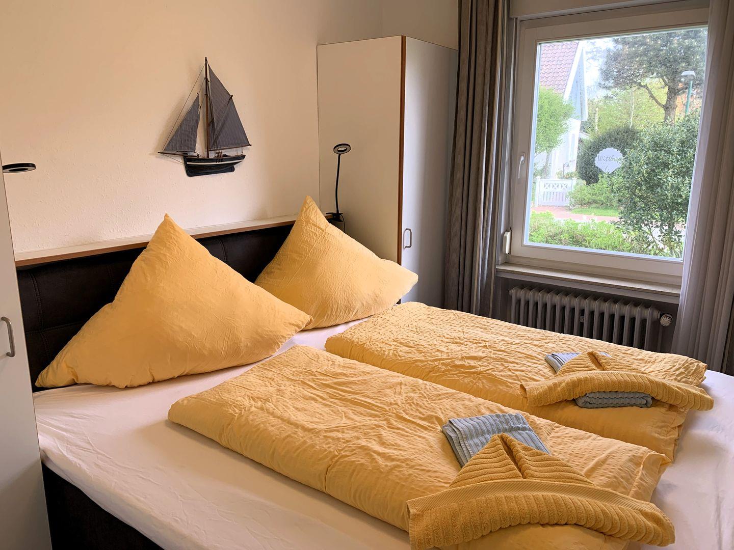 1 Schlafzimmer mit Boxspringbett und 2 Schlafzimmer mit je einem Einzelbett
