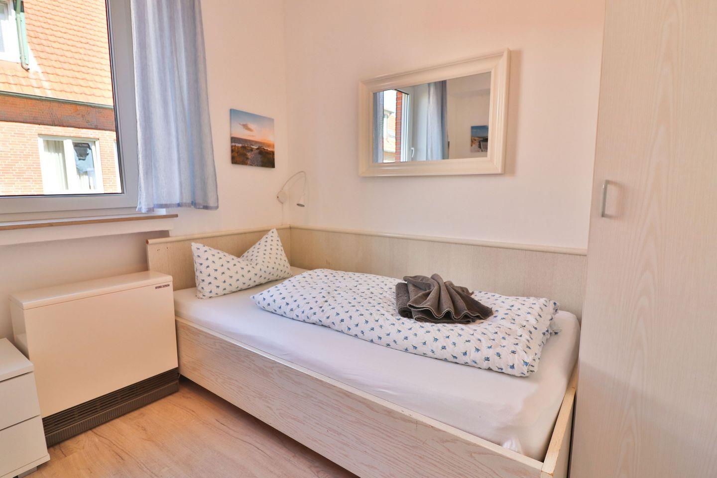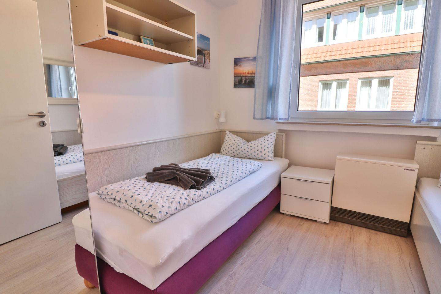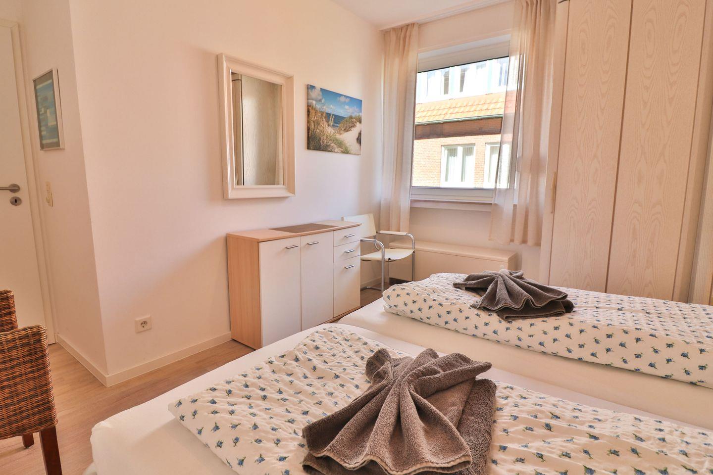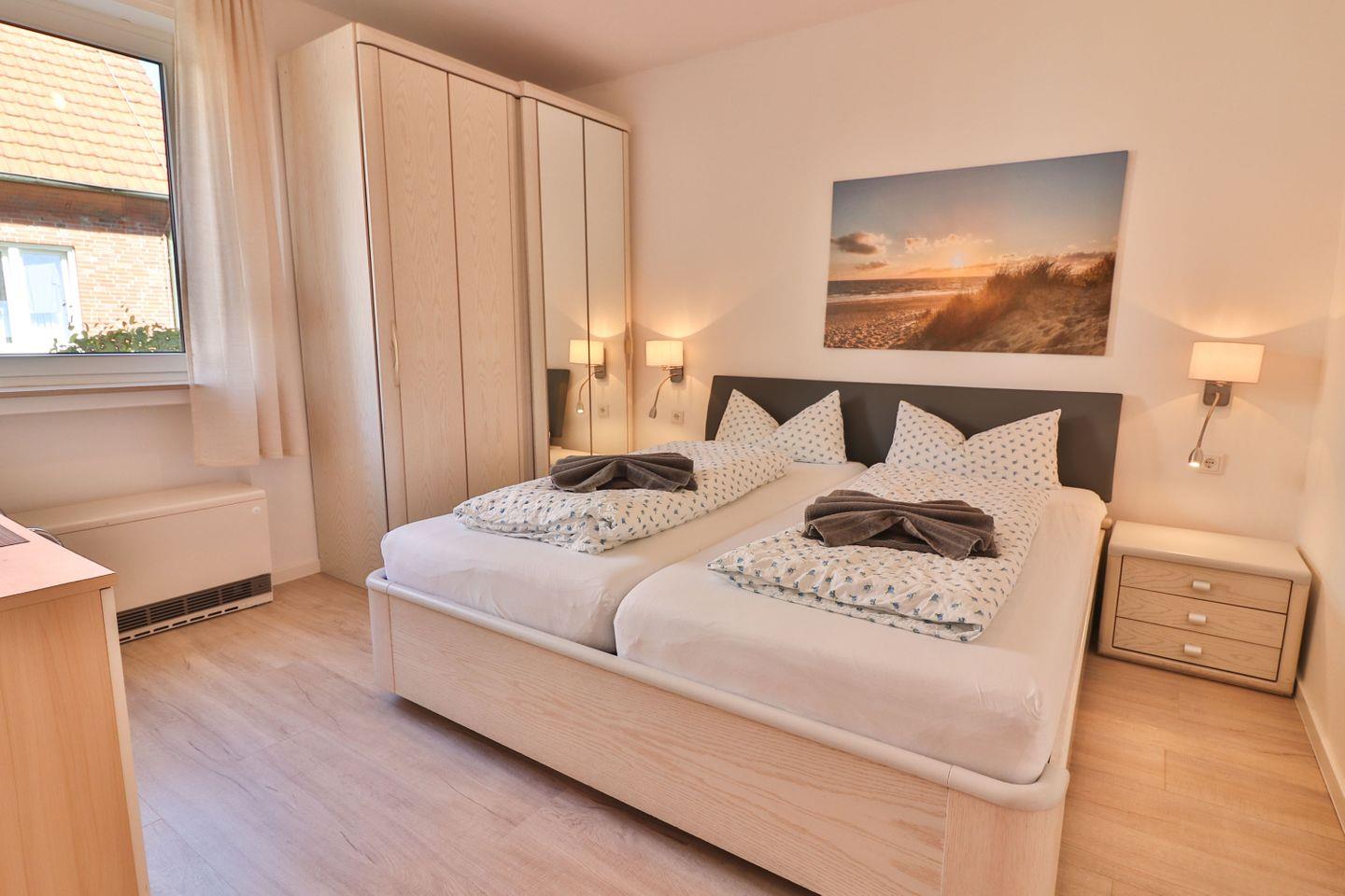 Haus Winter – Wohnung 2 bietet Ihnen auf ca. 65 m² eine komfortable Unterkunft im Erdgeschoss eines zentral gelegenen Hauses auf der beliebten Nordseeinsel Langeoog. Die Ferienwohnung ist sorgfältig ausgestattet und besticht durch ihre zeitgemäße und zugleich gemütliche Atmosphäre, die sowohl Familien als auch Einzelreisende oder Paare anspricht. Mit insgesamt drei Zimmern und zwei separaten Schlafzimmern, eines mit einem Doppelbett (180 x 190 cm) und das andere mit zwei Einzelbetten (100 x 200 cm und 90 x 200 cm) ausgestattet, finden bis zu vier Gäste bequem Platz.