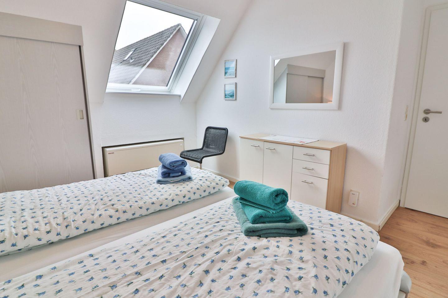 Haus Winter – Wohnung 3 bietet Ihnen ein komfortables Zuhause für Ihre Zeit auf Langeoog. Die Wohnung befindet sich im ersten Stock des Hauses Winter in der Gartenstraße 8 und ist für bis zu vier Personen ausgelegt. Mit insgesamt drei Zimmern, darunter zwei separate Schlafzimmer, jeweils eins mit Doppelbett und das andere mit zwei Einzelbetten ausgestattet und ca. 65 m² eignet sich die Unterkunft besonders für Familien oder befreundete Paare, die Wert auf Privatsphäre und Gemütlichkeit legen.