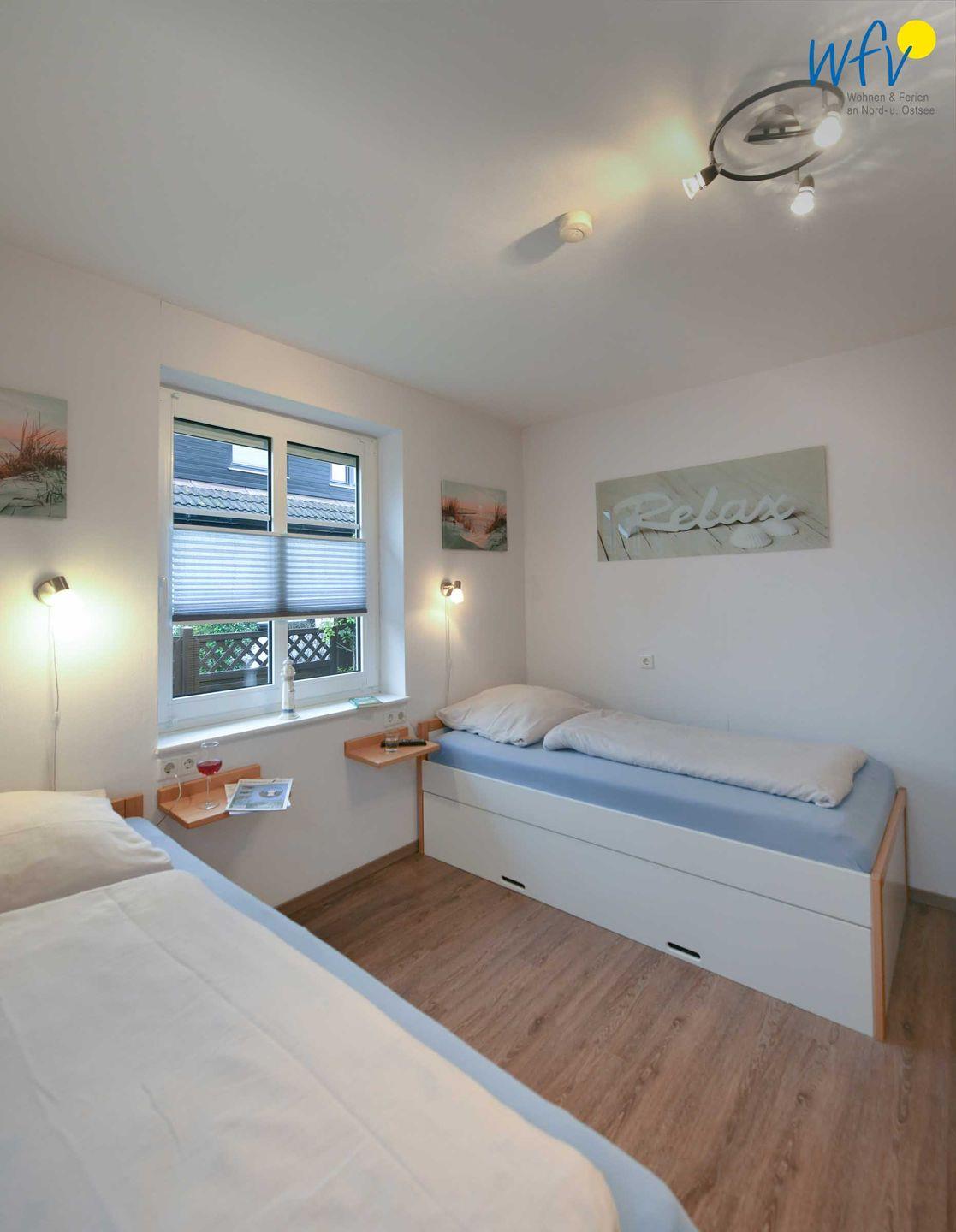 Drei separate Schlafzimmer bieten Ihnen angenehme Rückzugsmöglichkeiten. Das Erste ist mit einem kleinen Doppelbett (je 80 x 200), einem Kleiderschrank und einem TV ausgestattet, das Zweite mit zwei Einzelbetten (90 x 200 cm), einem Kleiderschrank und einem TV und das Dritte mit einem Etagenbett (je 80 x 200 cm).