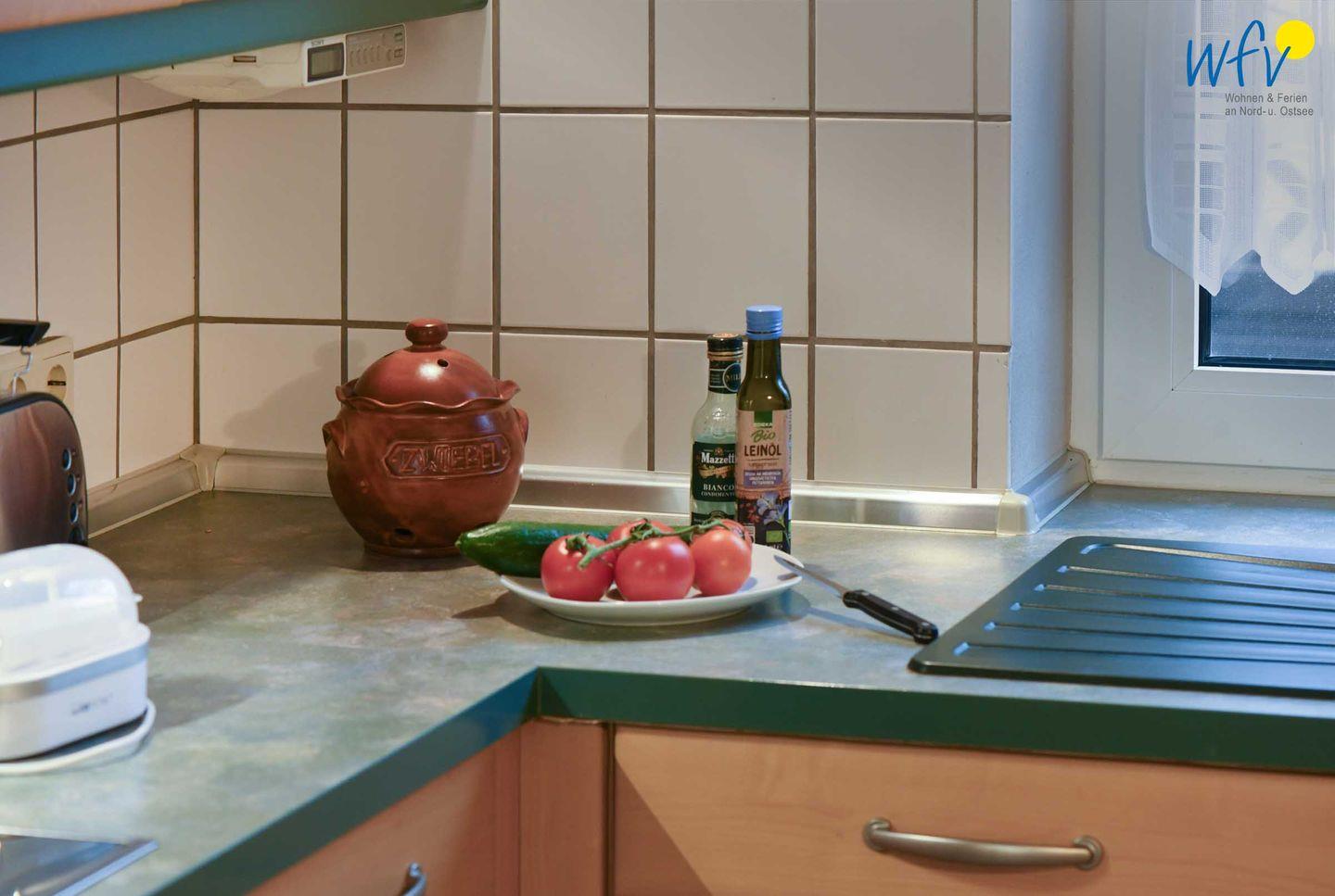 Für warme Frühstücksbrötchen, den Snack zwischendurch oder das leckere Abendessen ist die separate Küche komplett ausgestattet. Sie verfügt u.a. über einen Vier-Platten-Ceranherd mit Backofen, eine Mikrowelle, einen Gefrierschrank und einen Geschirrspüler sowie über diverse Kleingeräte. Ihre Mahlzeiten können Sie sowohl am Küchentresen, als auch am großen Esstisch im Wohnraum einnehmen.