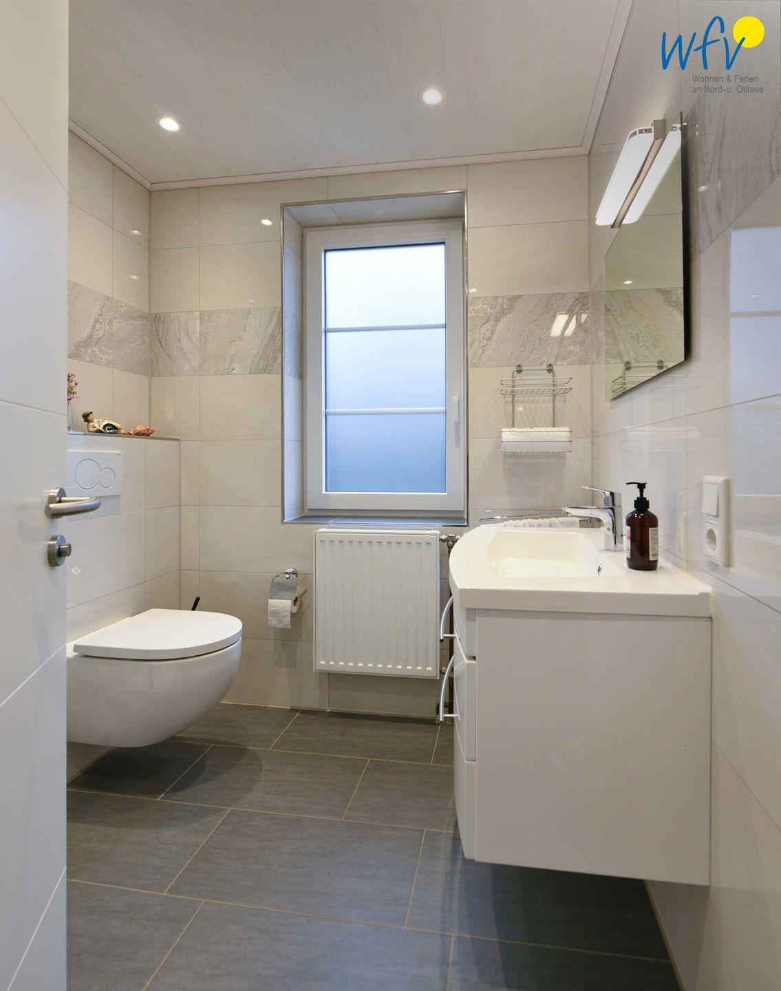 Zwei Tageslichtbäder mit Dusche und breitem Waschtisch mit Spiegel sorgen für zusätzlichen Komfort und entspannen die Badezimmerroutine.