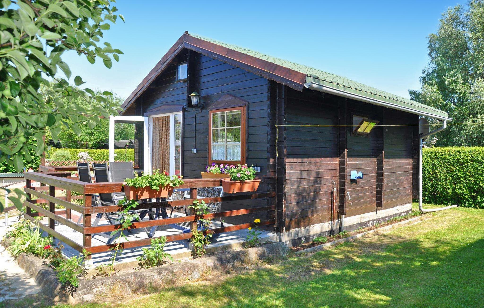 En av to ferieboliger i tømmerhyttestil for 2 personer hver ligger rett ved Peene-elven på eierens ca. 1300 m² store, fullt inngjerdede boligeiendom. Badeplassen og en restaurant ligger bare ca. 300 og 400 m unna, og sentrum med shoppingmuligheter ligger ca. 500 m unna.