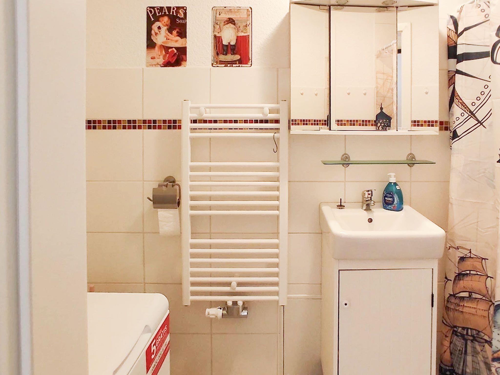 Das Badezimmer ist modern gestaltet, mit hochwertigen Sanitäreinrichtungen und Fliesenböden, die eine saubere und frische Atmosphäre schaffen. Eine Waschmaschine und ein Haartrockner stehen ebenfalls zur Verfügung, um Ihren Aufenthalt so komfortabel wie möglich zu gestalten.