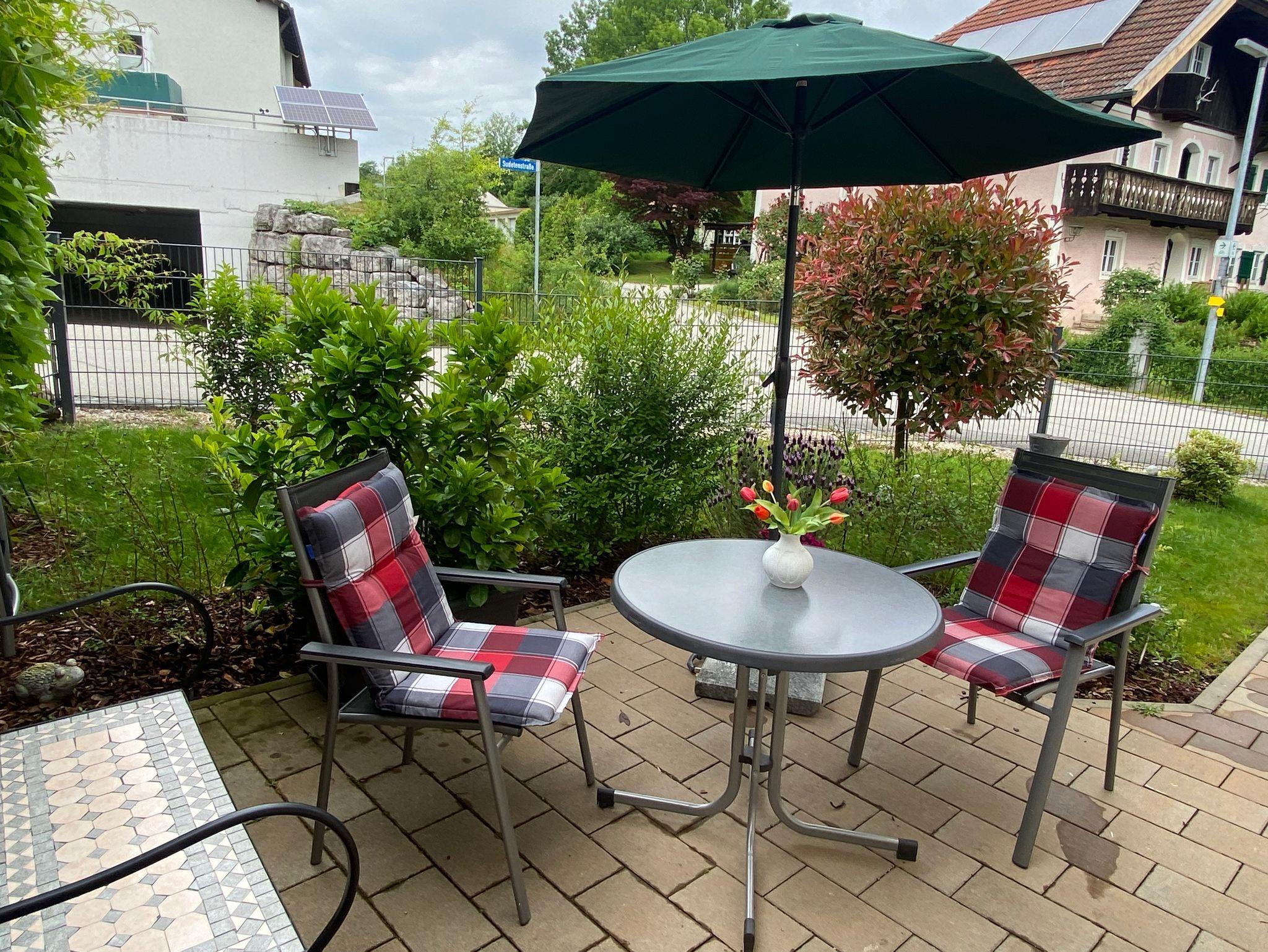 2-Zimmer EG Wohnung wurde im Juli 2022 komplett neu saniert und mit neue Möbel eingerichtet. Ferienwohnung mit Terrasse in ruhiger Lage. Blick zur Salzach, ca. 500m in die Innenstadt von Laufen. Flachbildschirm, TV, WLAN, neu ausgestattete Küche mit Geschirrspüler und Mikrowelle, Bad mit WC und Dusche. Eigenen Abstellraum mit Waschmaschine / Wäschetrockner, Bügelbrett und Wäschekorb mit allen Utensillien. Handtücher und Bettwäsche werden gestellt. Eigene Terrasse mit Sitz- und Liegemöglichkeit, Tisch und Sonnenschirm. Kostenfreie Parkmöglichkeit vor der Ferienwohnung.