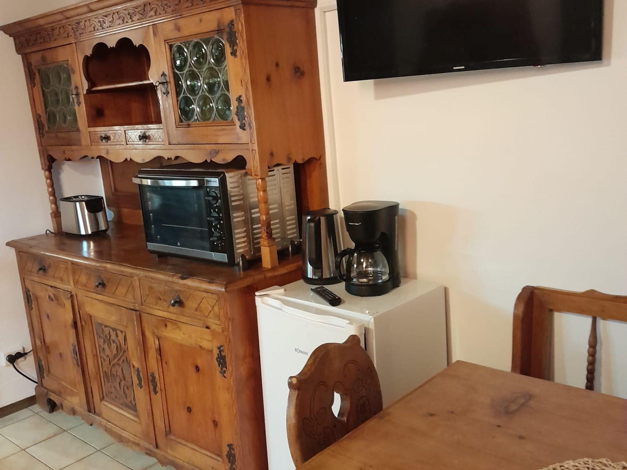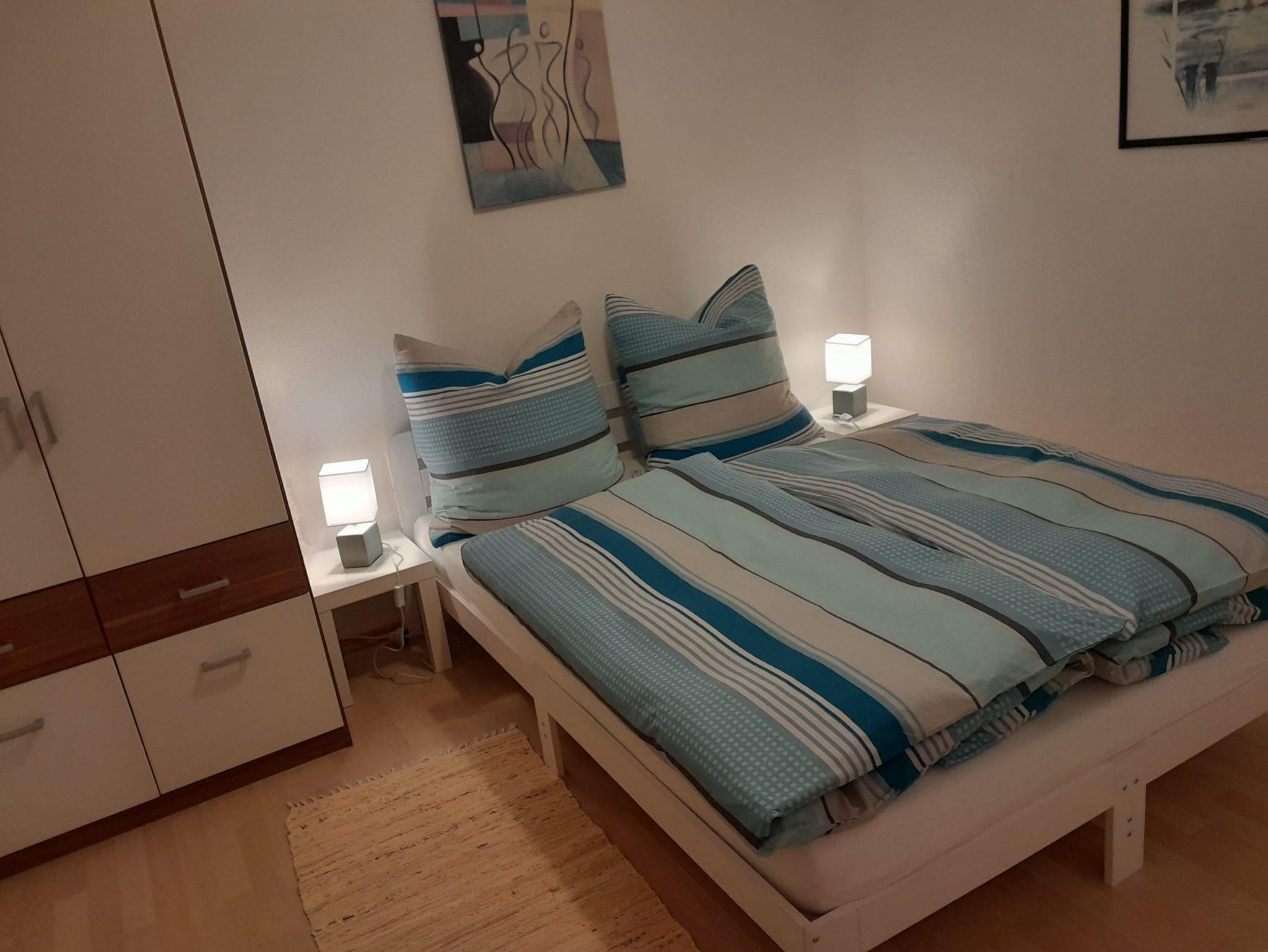 Schöne, ruhige 2 Zimmer Souterrain-Wohnung mit 2 großen Fenstern zum Öffnen, ebenerdig. Frisch renoviert 2025, kostenloses WLAN vorhanden. Im Wohnraum befindet sich eine Küchenzeile, ausgestattet mit allem Zubehör inkl. Kühlschrank, Mikrowelle, Kaffeemaschine und lädt zum Kochen ein. In dem Wohnbereich befindet sich auch ein großer Tisch mit Eckbank und Stühlen, ebenso ein ausziebares Schlafsofa und ein Fernseher. Alle Möbel sind aus Zierbenholz.Das Schlafzimmer ausgestattet mit einem Doppelbett, 2 Nachtkästchen und einem Kleiderschrank bietet Platz für Ihre Kleidung. Betten sind bezogen, zusätzliche Decken und Kissen vorhanden. Das Badezimmer mit WC, Dusche, Handtücher, Fön und Toilettenartikel.